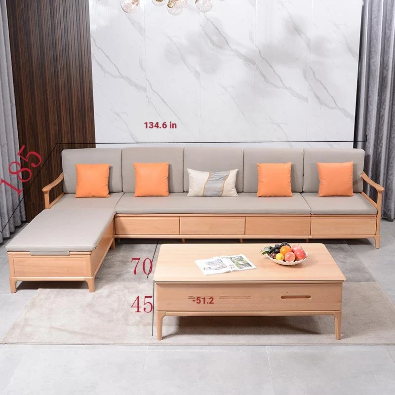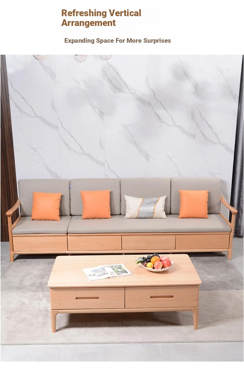 Four-person Imperial Concubine + long tea table (log color) full paint moisture-proof storage style