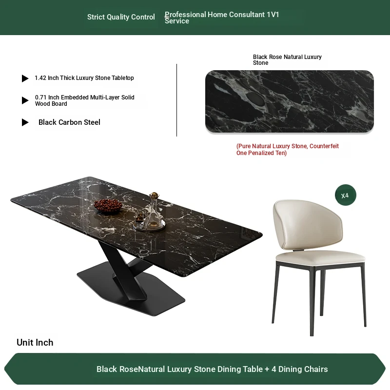 [Black Rose] Natural Luxury Stone Dining Table + Dining Chair * 4 (Pure Natural Luxury Stone, Ten Penalties for Fake)