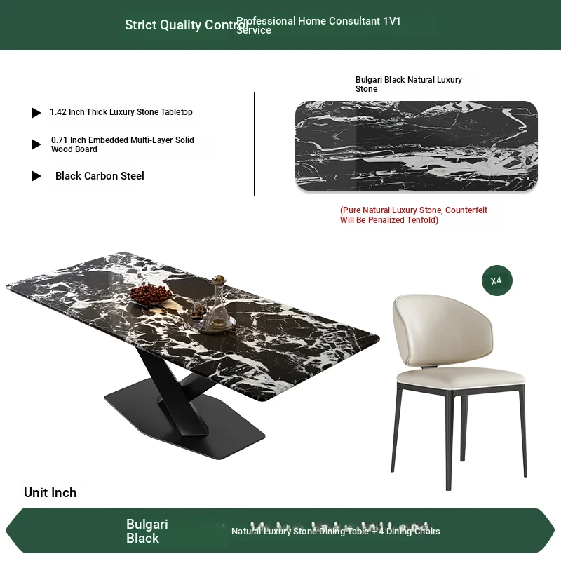 [Bulgari Black] Natural Luxury Stone Dining Table + Dining Chair * 4 (Pure Natural Luxury Stone, Ten Penalties for Fake)