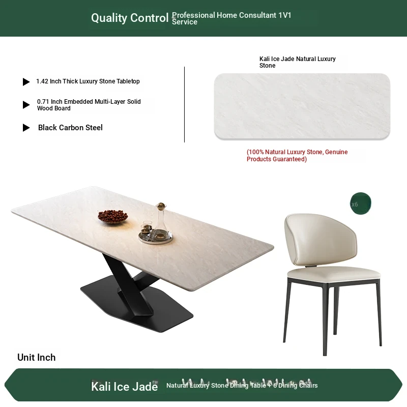 [Cary Bingyu] Natural Luxury Stone Dining Table + Dining Chair * 6 (Pure Natural Luxury Stone, Ten Penalties for Fake)