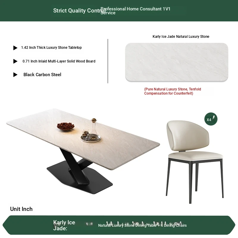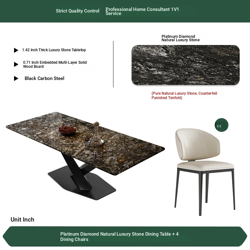 [Platinum Diamond] Natural Luxury Stone Dining Table + Dining Chair * 4 (Pure Natural Luxury Stone, Ten Penalties for Fake)