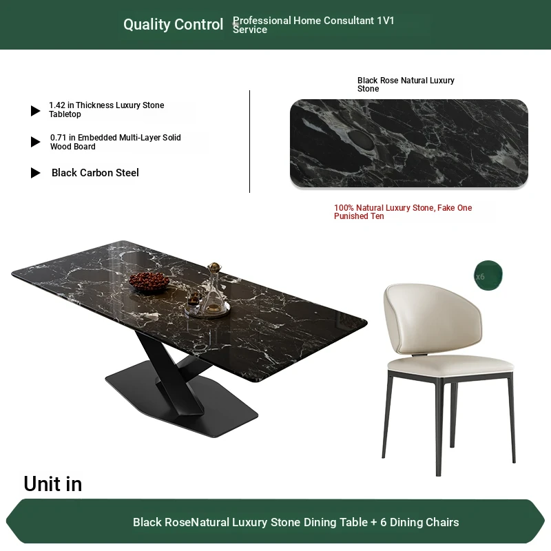 [Black Rose] Natural Luxury Stone Dining Table + Dining Chair * 6 (Pure Natural Luxury Stone, Ten Penalties for Fake)