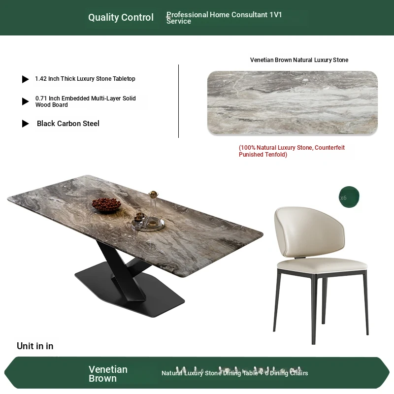 [Venice Brown Made in China] Natural Luxury Stone Dining Table + Dining Chair * 6 (Pure Natural Luxury Stone, Ten Penalties for Fake)