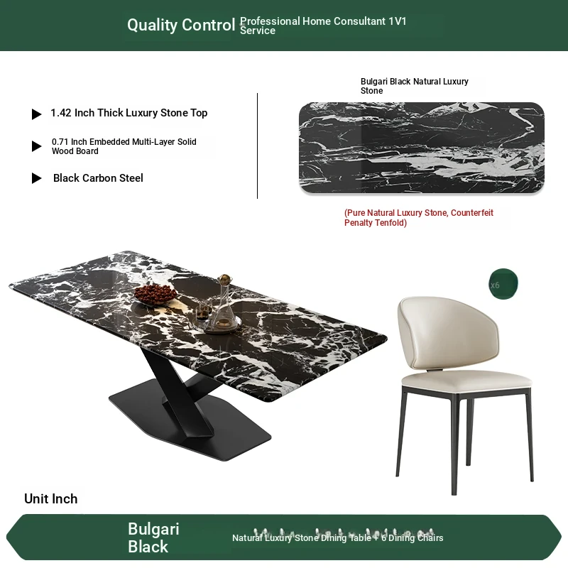 [Bulgari Black] Natural Luxury Stone Dining Table + Dining Chair * 6 (Pure Natural Luxury Stone, Ten Penalties for Fake)