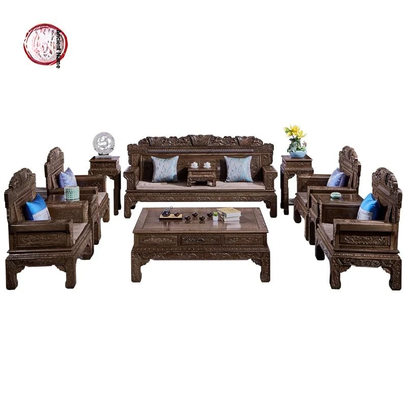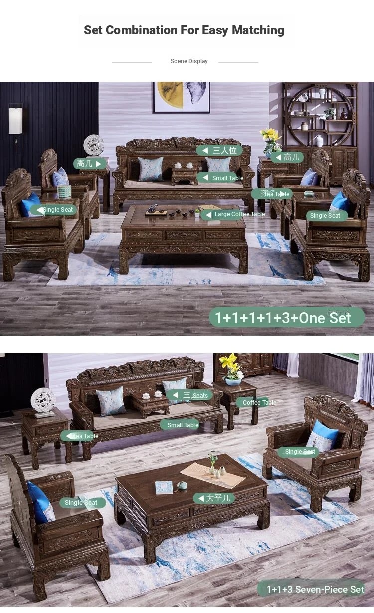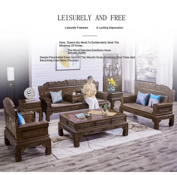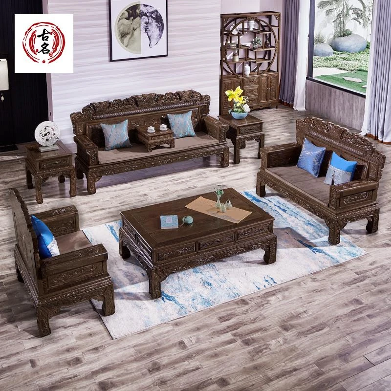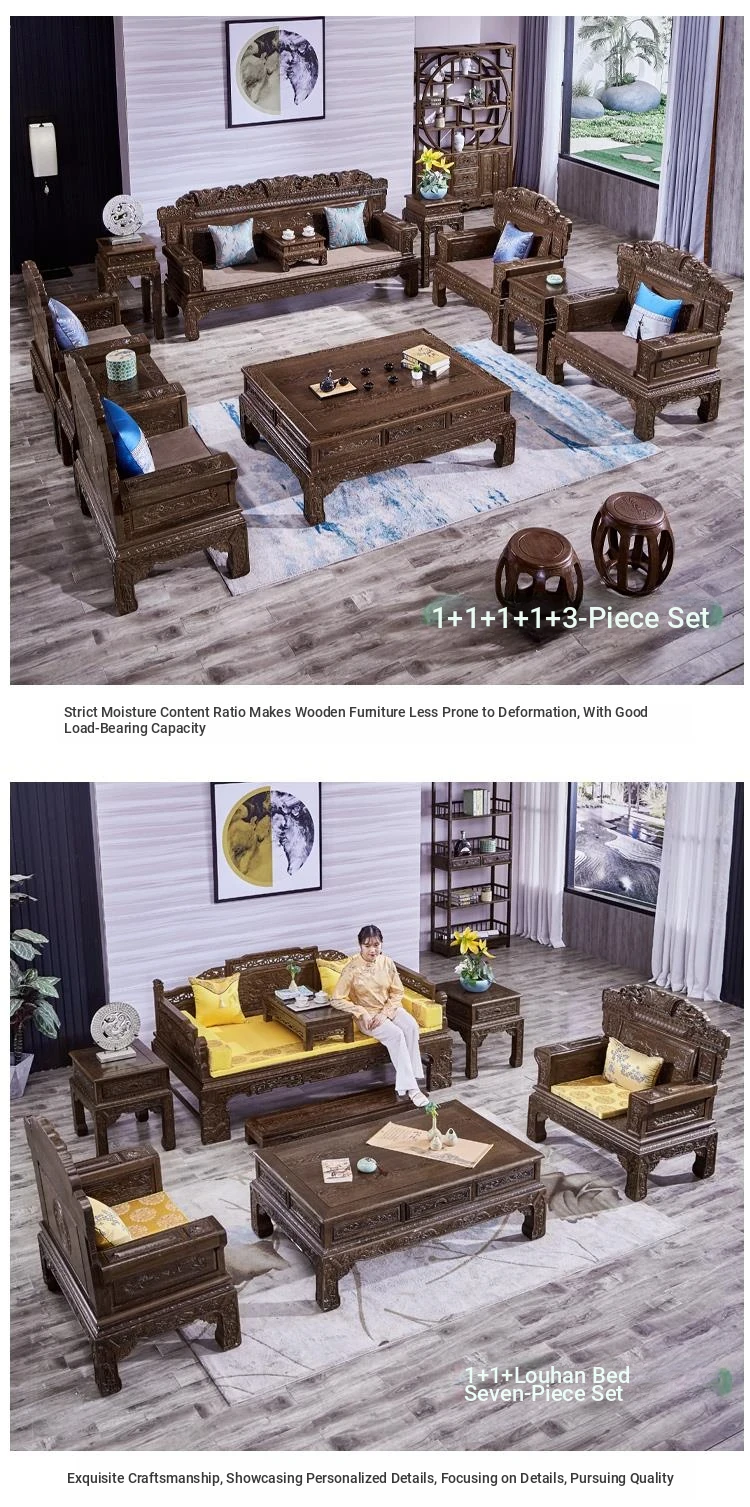Elegant Chinese Hardwood Living Room Set - 11-Piece Solid Wood Sofa in Rosewood with Exquisite Carvings, Perfect for Villas, Inspired by Ming and Qing Dynasties