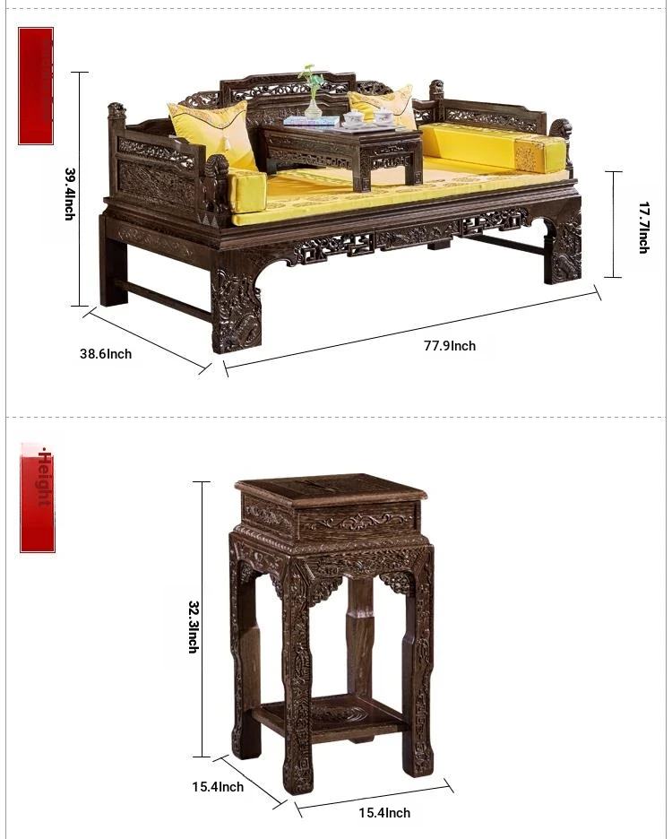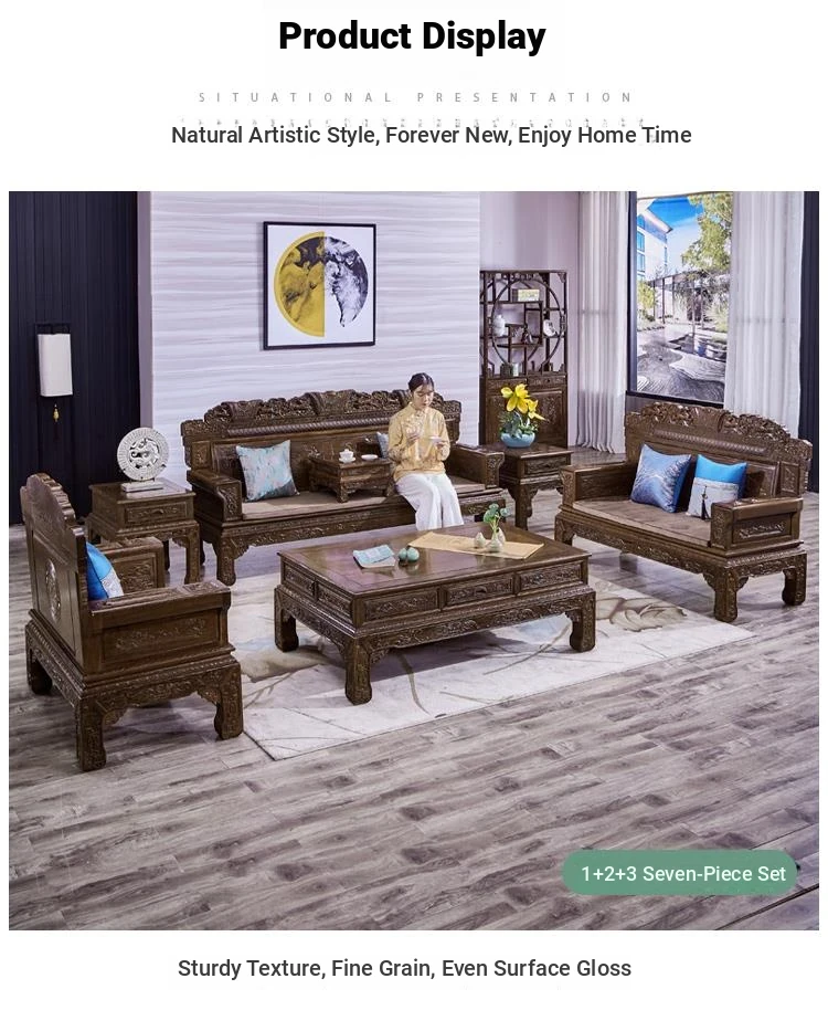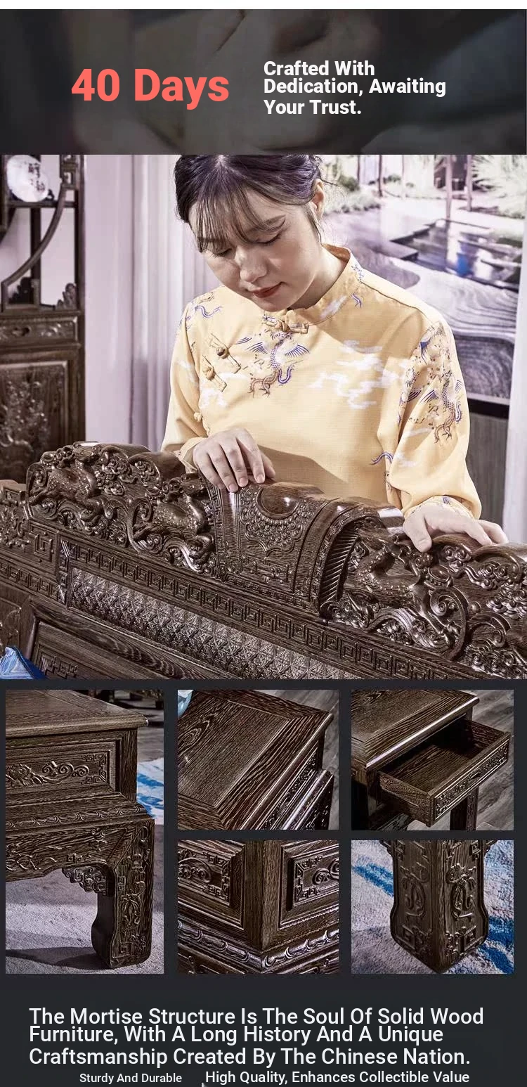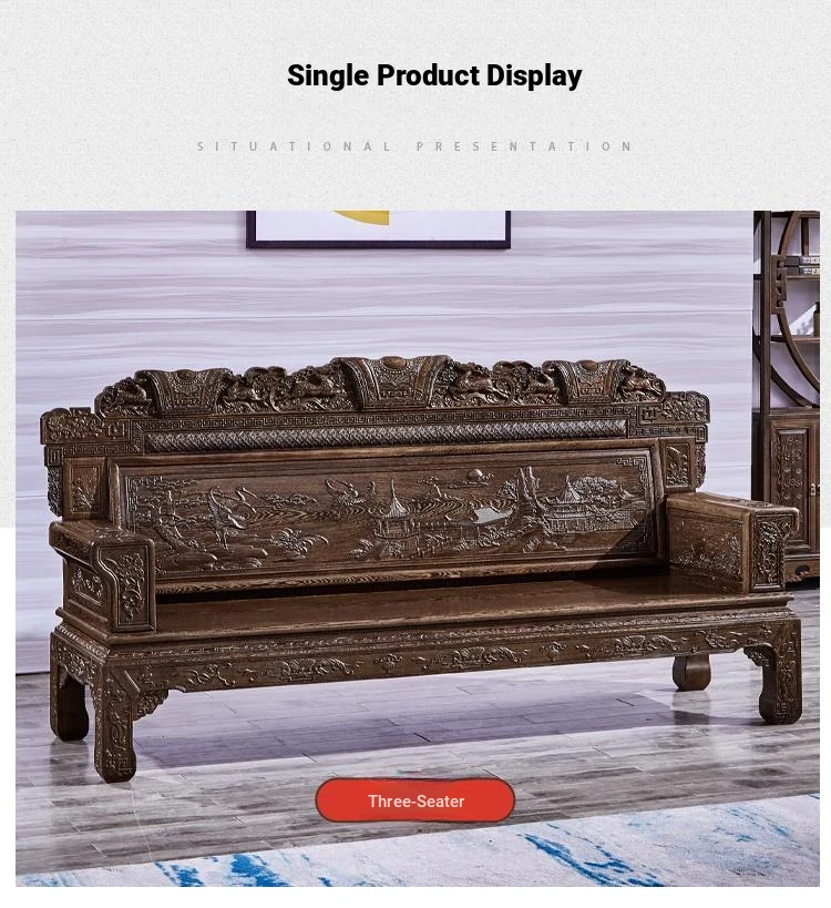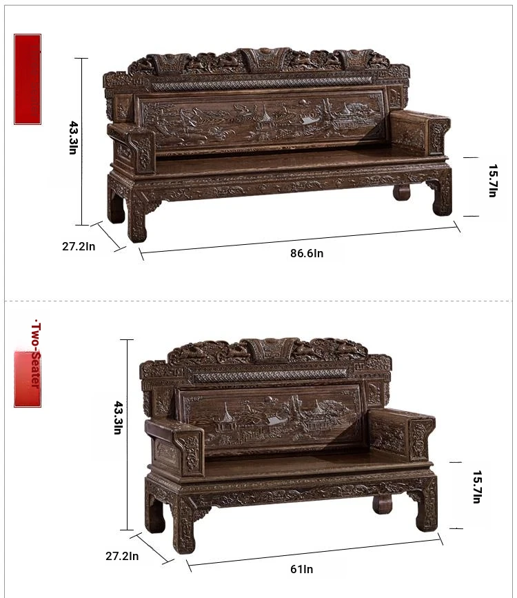 Elegant Chinese Hardwood Living Room Set - 11-Piece Solid Wood Sofa in Rosewood with Exquisite Carvings, Perfect for Villas, Inspired by Ming and Qing Dynasties