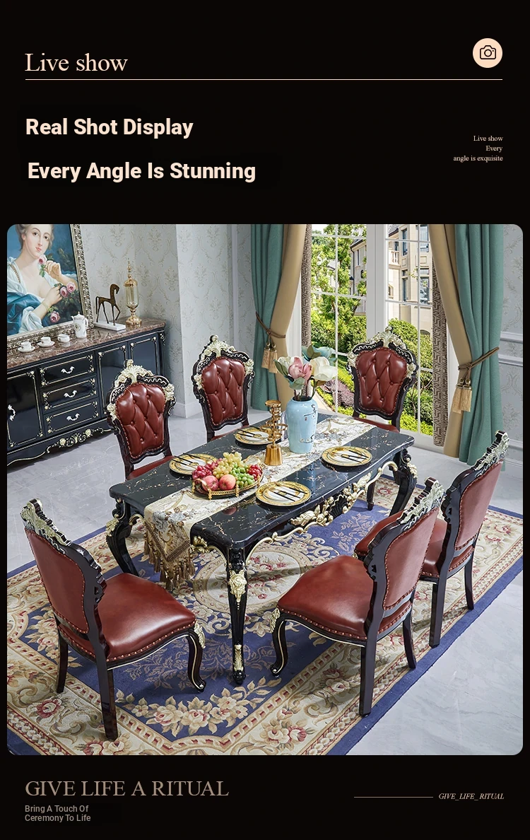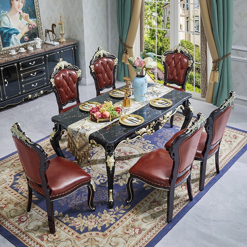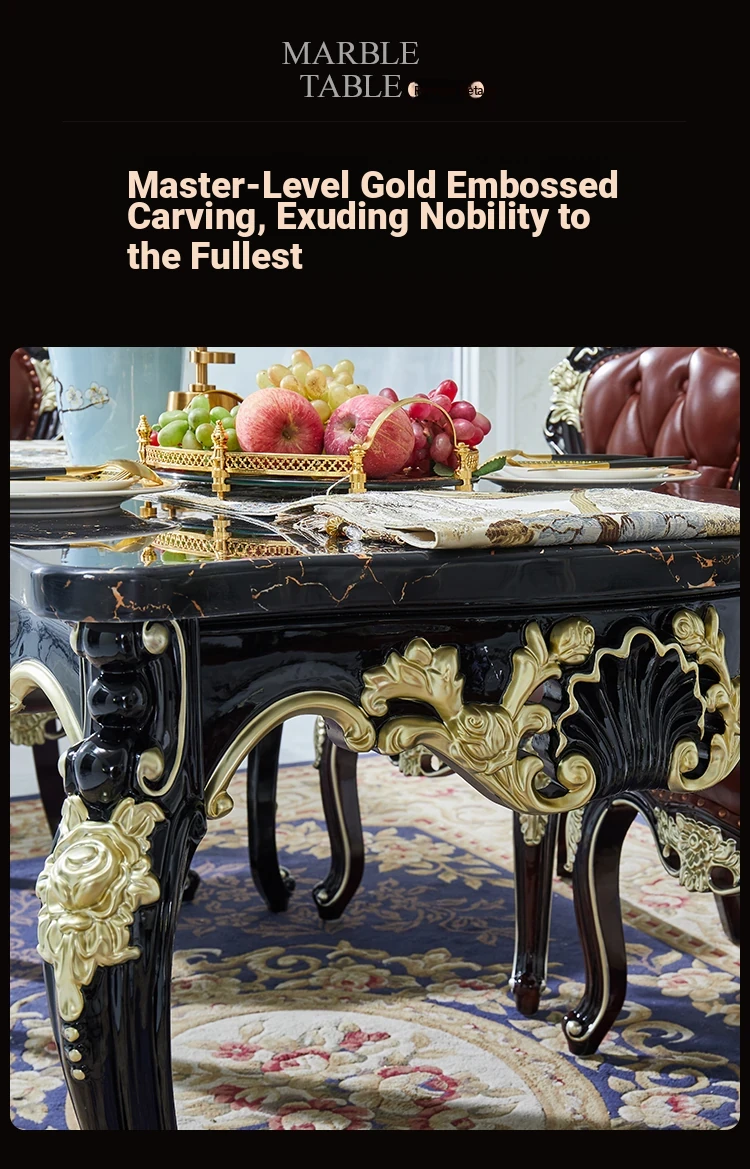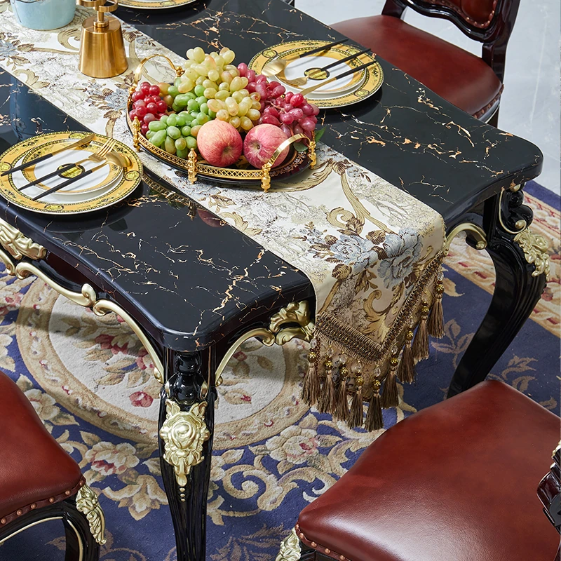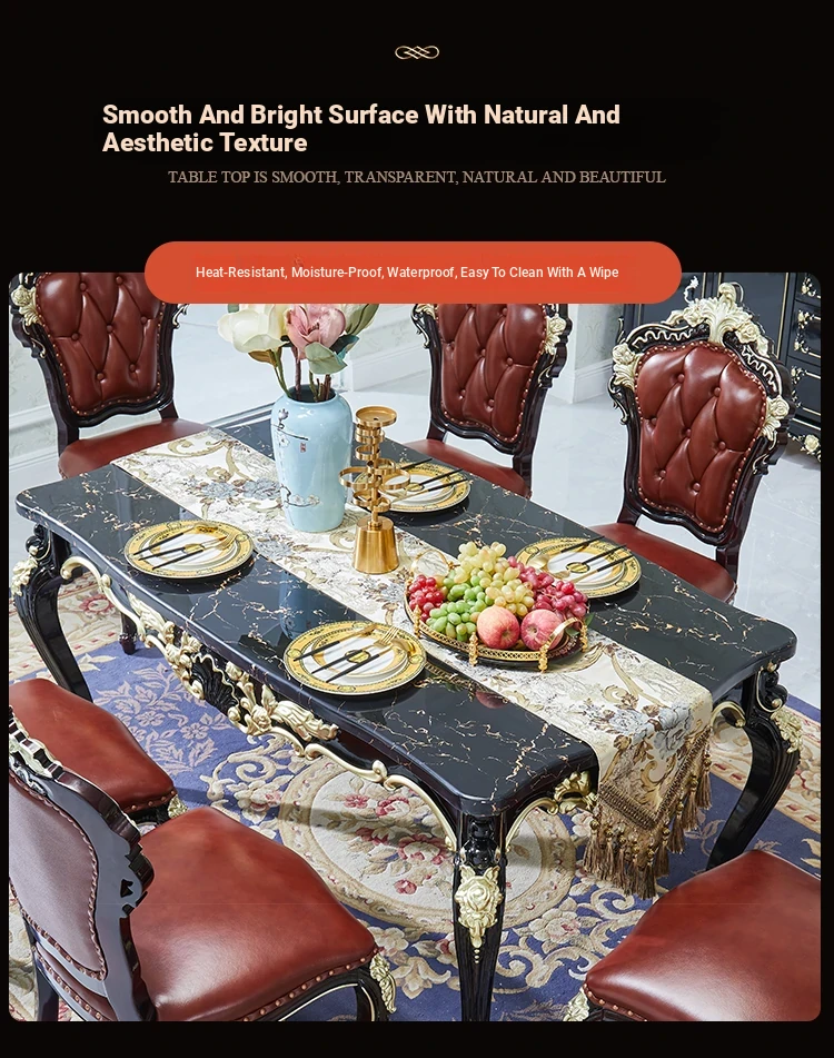 Elegant European Solid Wood Dining Table and Chair Set with Marble Rectangular Table - American Style Light Luxury Home Dining Table for Family Meals