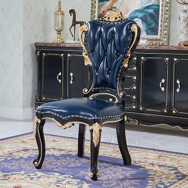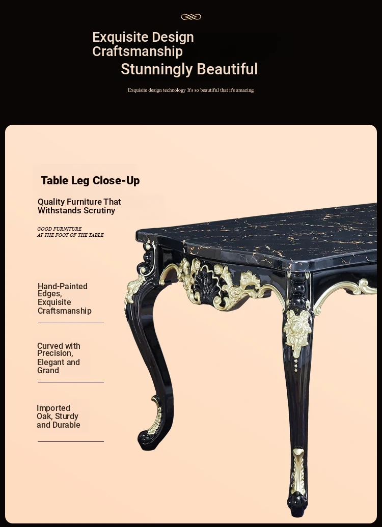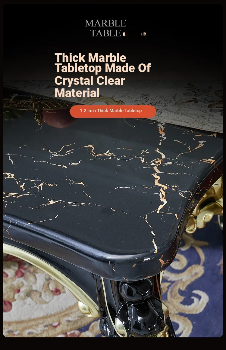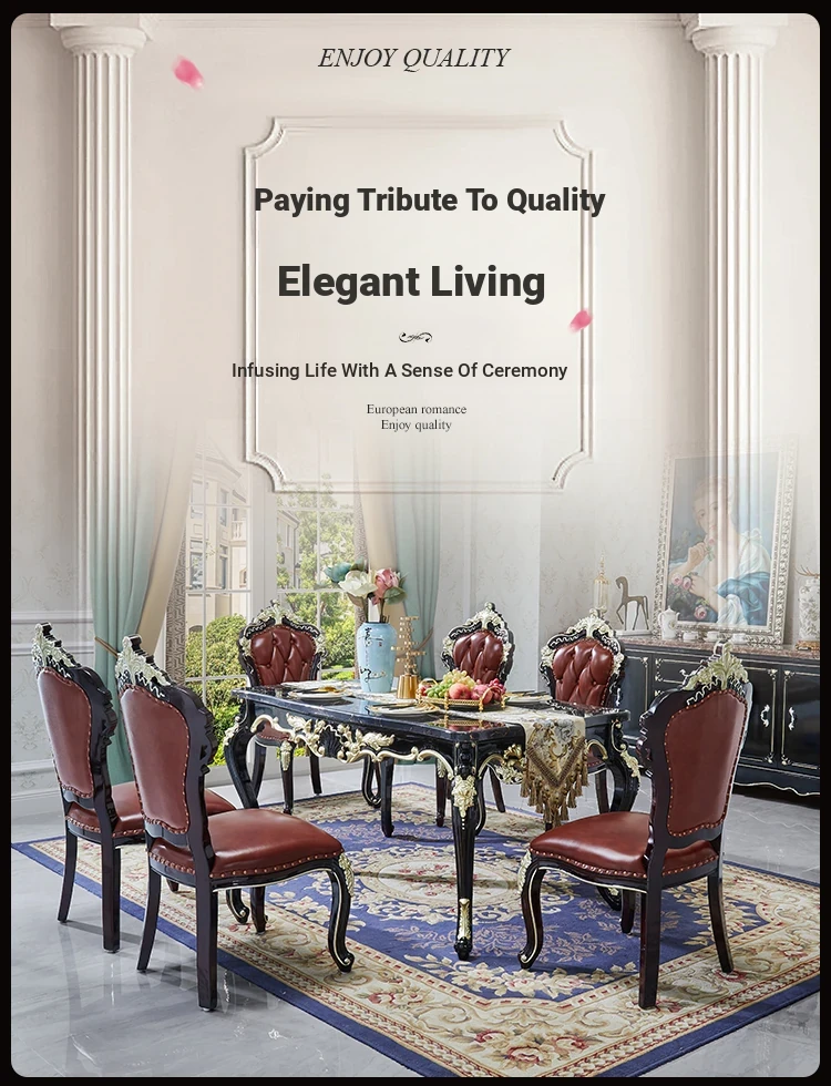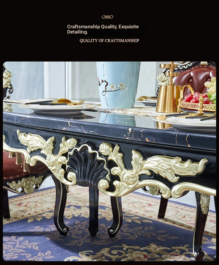 Elegant European Solid Wood Dining Table and Chair Set with Marble Rectangular Table - American Style Light Luxury Home Dining Table for Family Meals