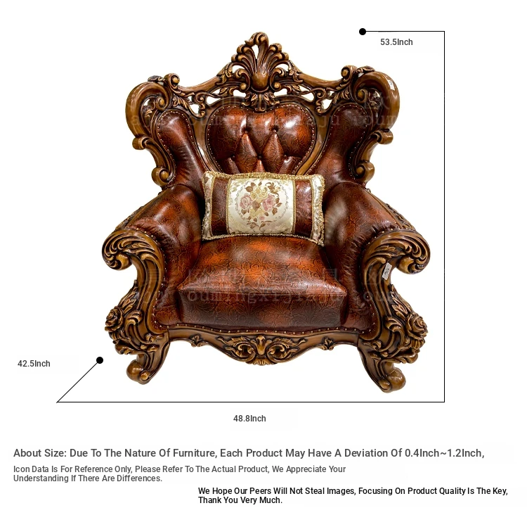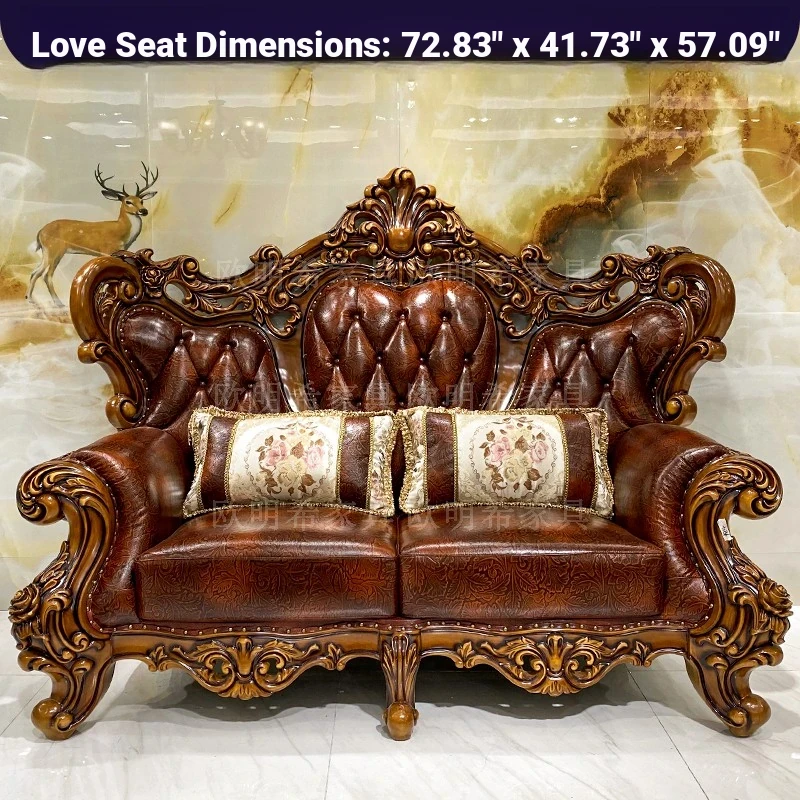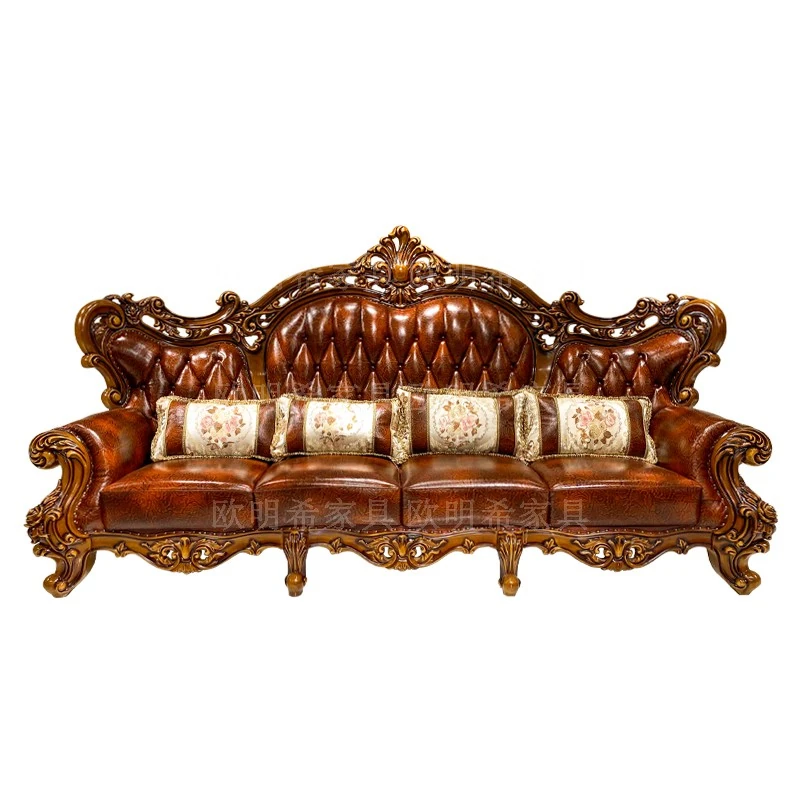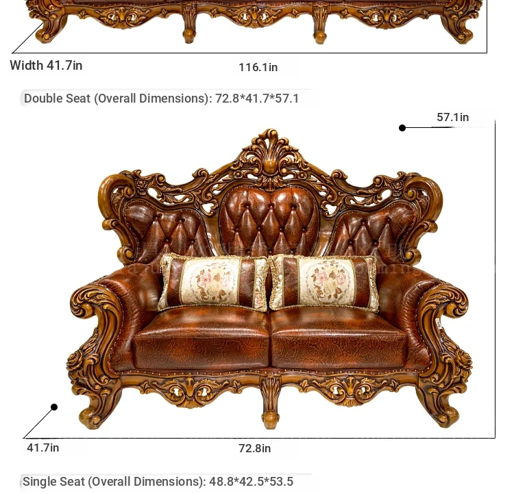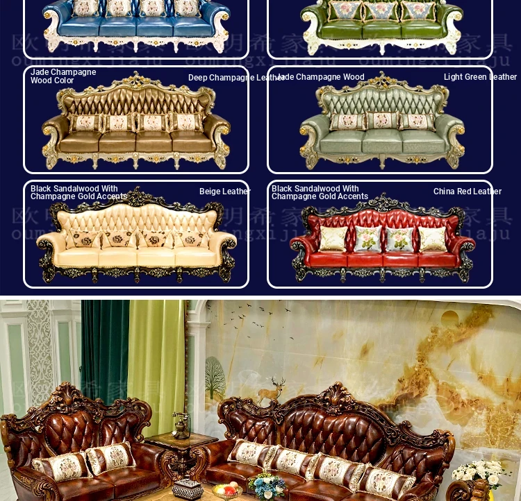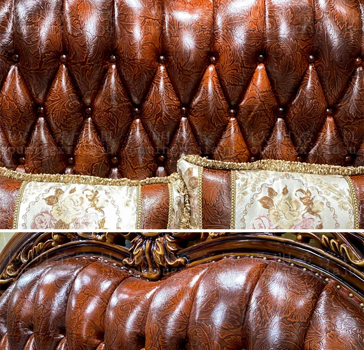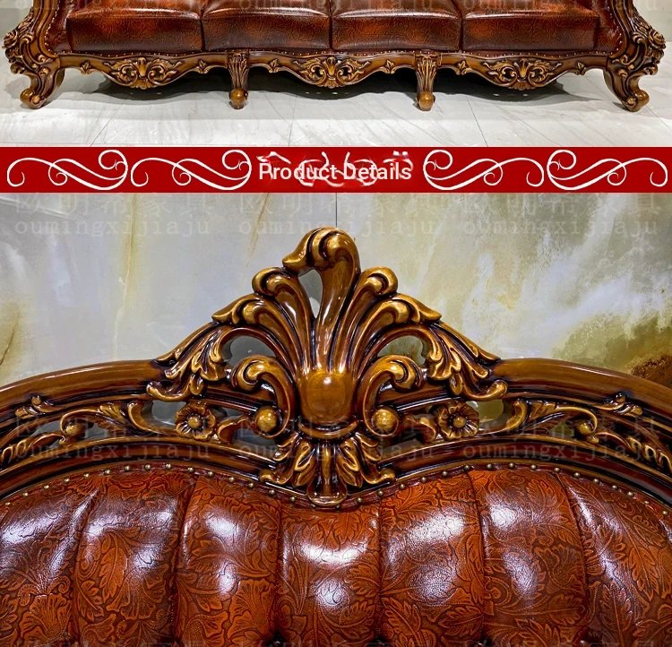Elegant European-Style Genuine Leather Sofa Set - Classic American Design for Luxurious Villas and Spacious Living Rooms, Crafted with Top-Grade Cowhide and Solid Wood Furniture