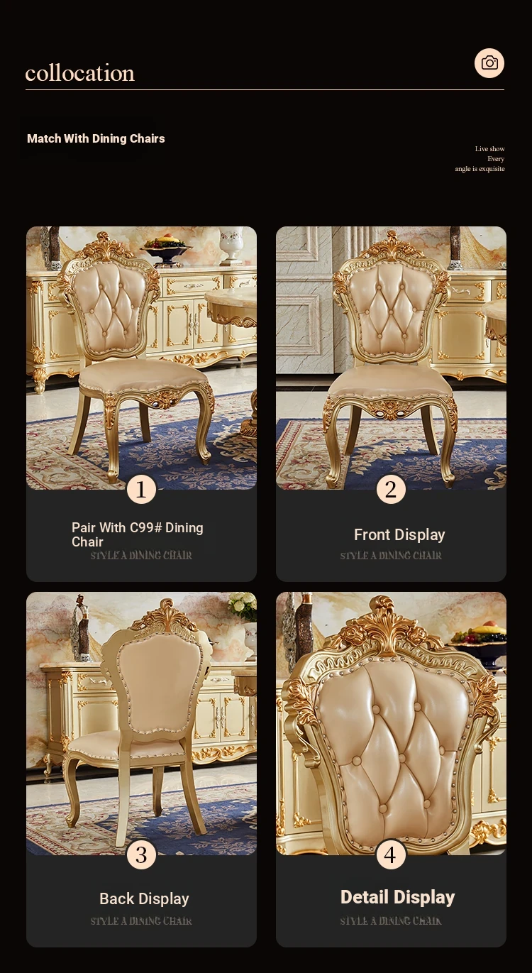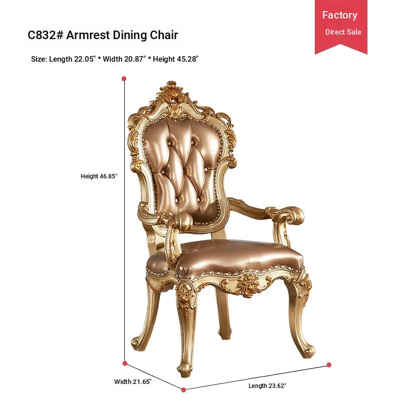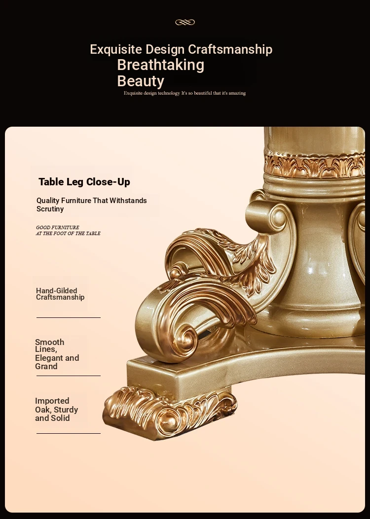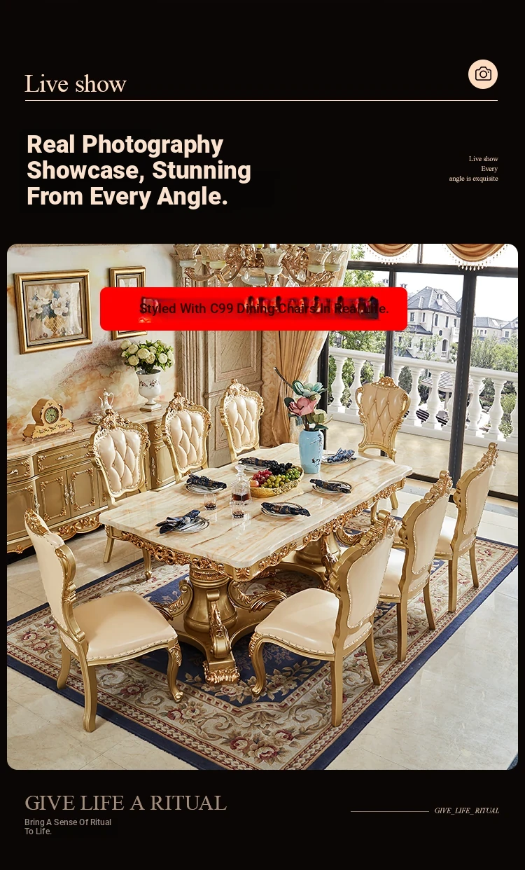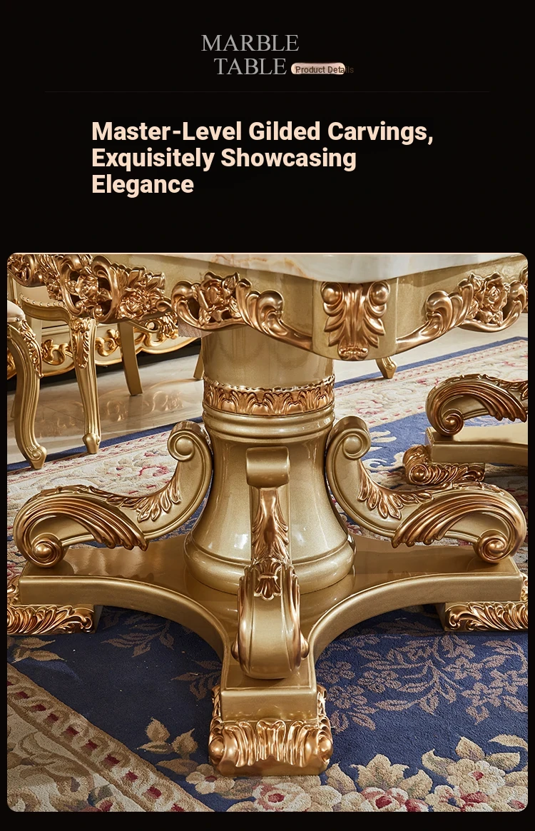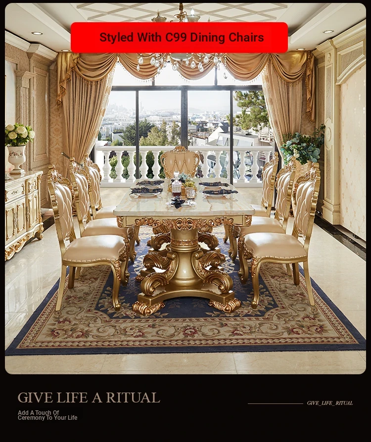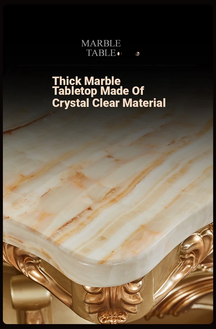 Elegant European-Style Solid Wood Carved Marble Dining Table and Chair Set - Luxurious Rectangular Table for 10 People, Perfect for Villas and Grand Dining Experiences!