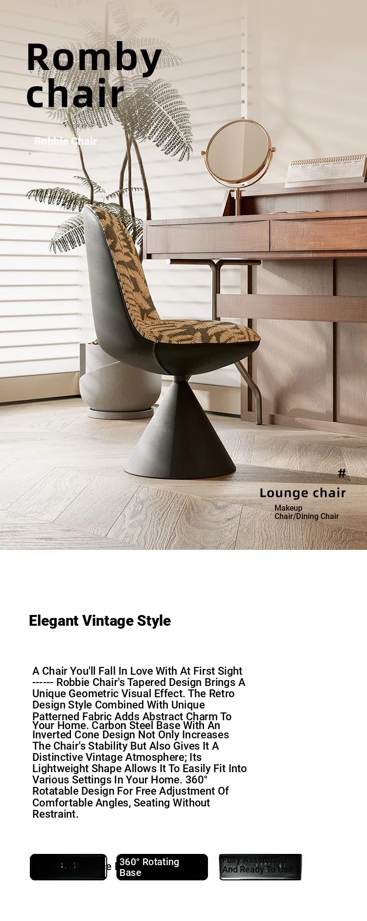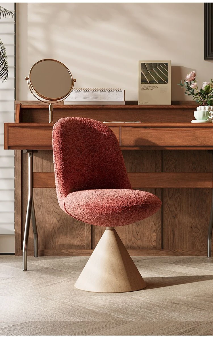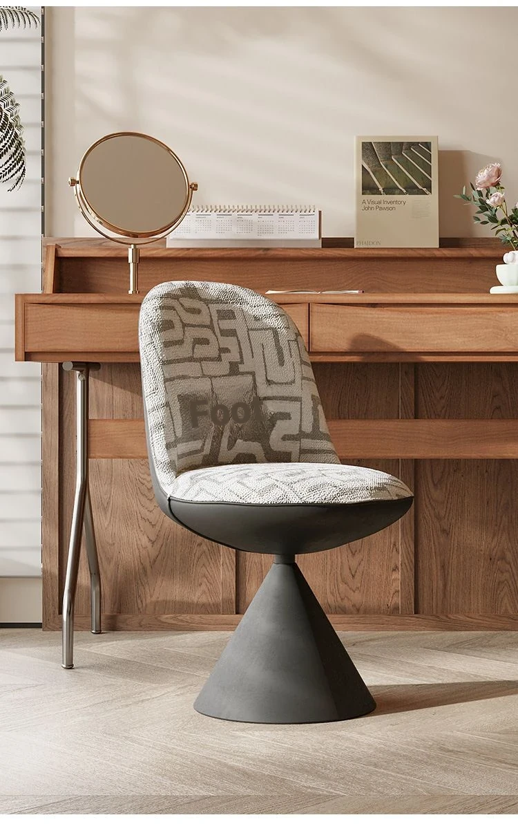 Elegant Italian Designer Makeup Chair - Minimalist Single Lounge Chair with Cone-Shaped High-End Design, Perfect for Makeup and Relaxation.