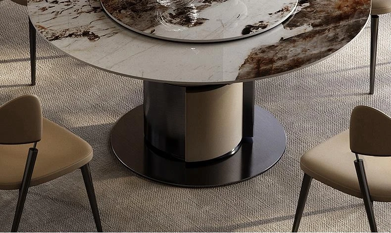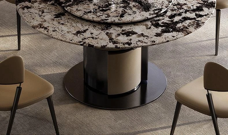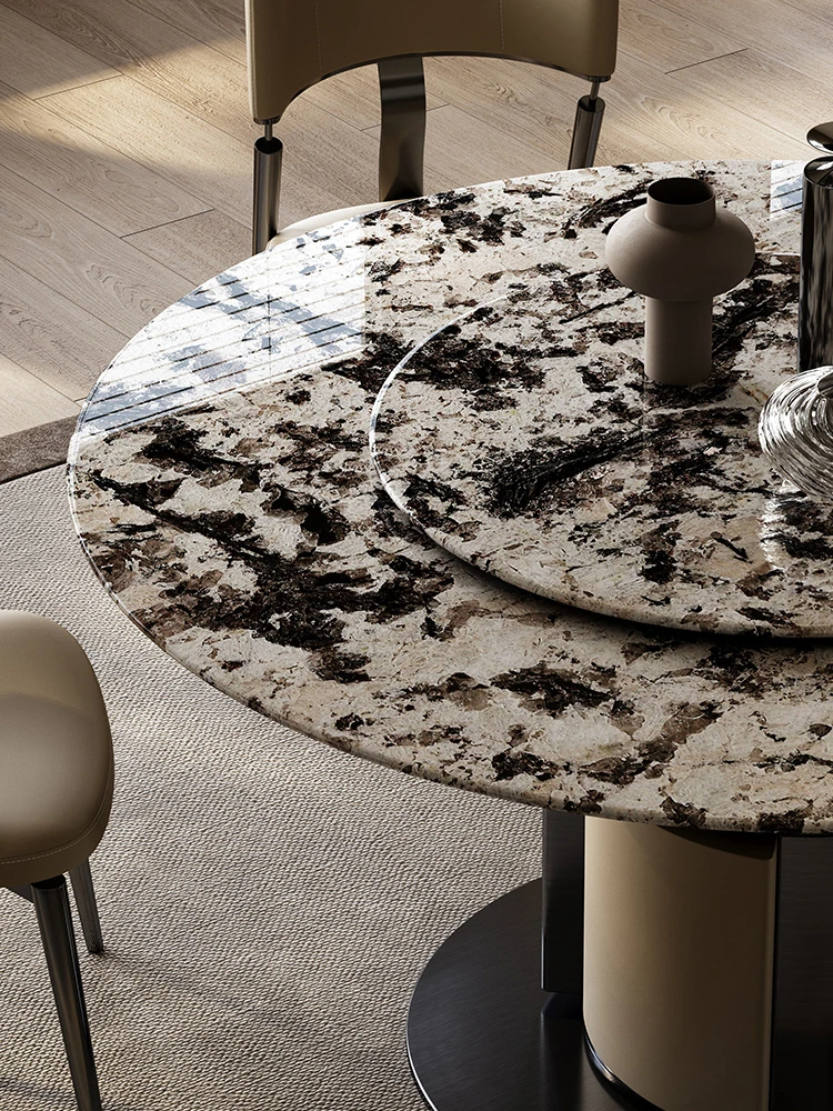 51.18 in round dining table/Snow Mountain Flying Fox Marble/with turntable