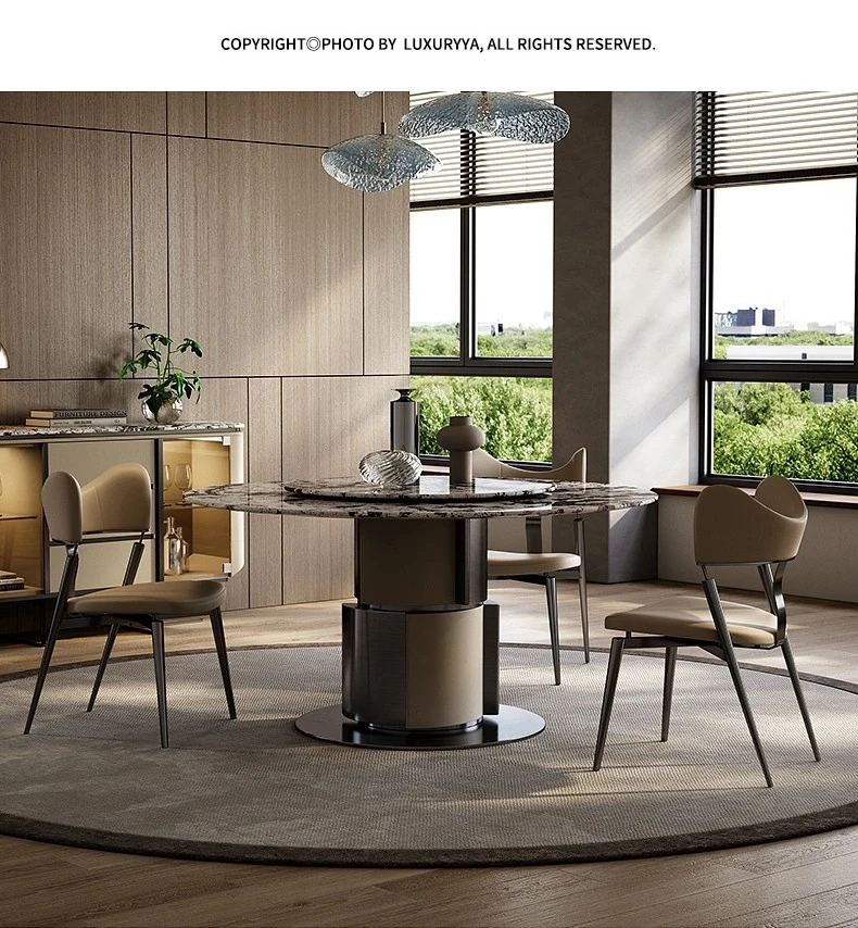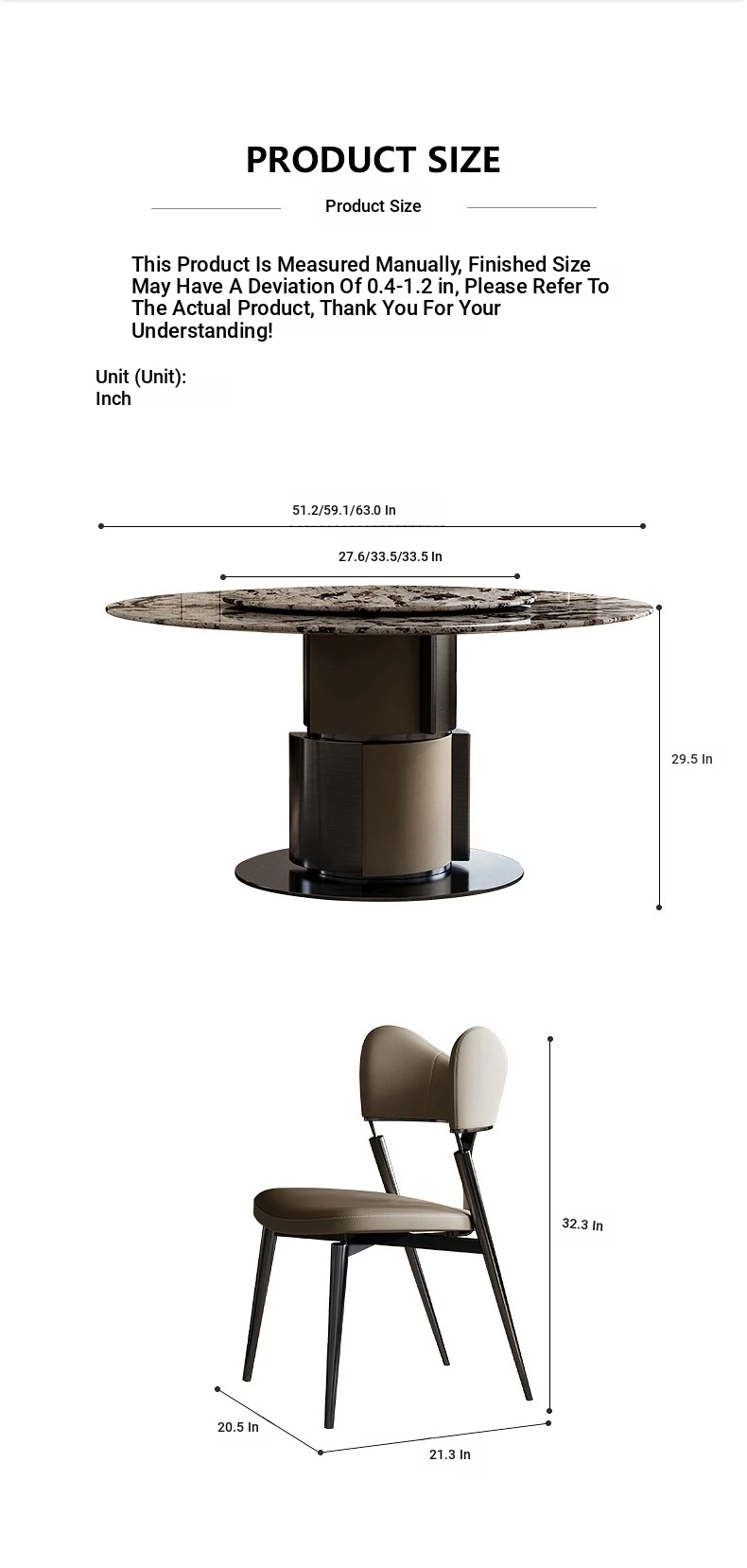 59.06 in round dining table/Snow Mountain Flying Fox Marble/with turntable
