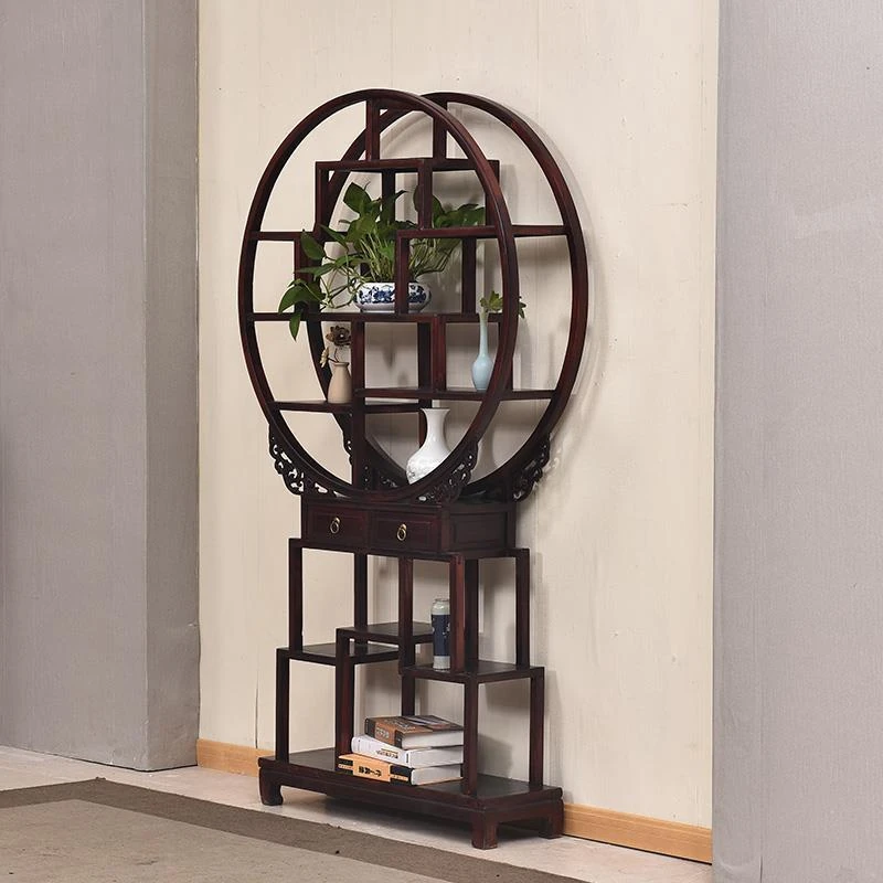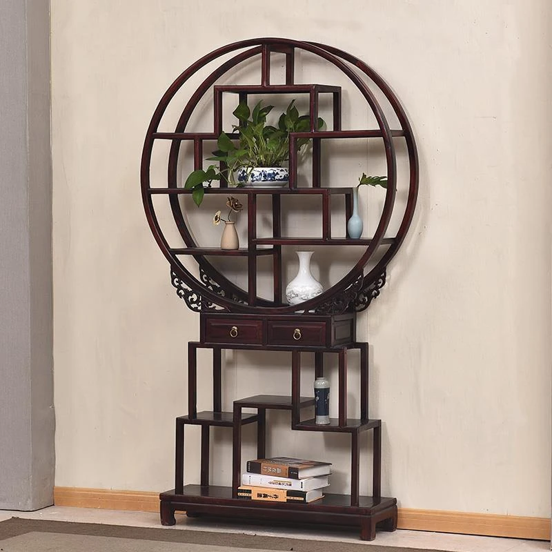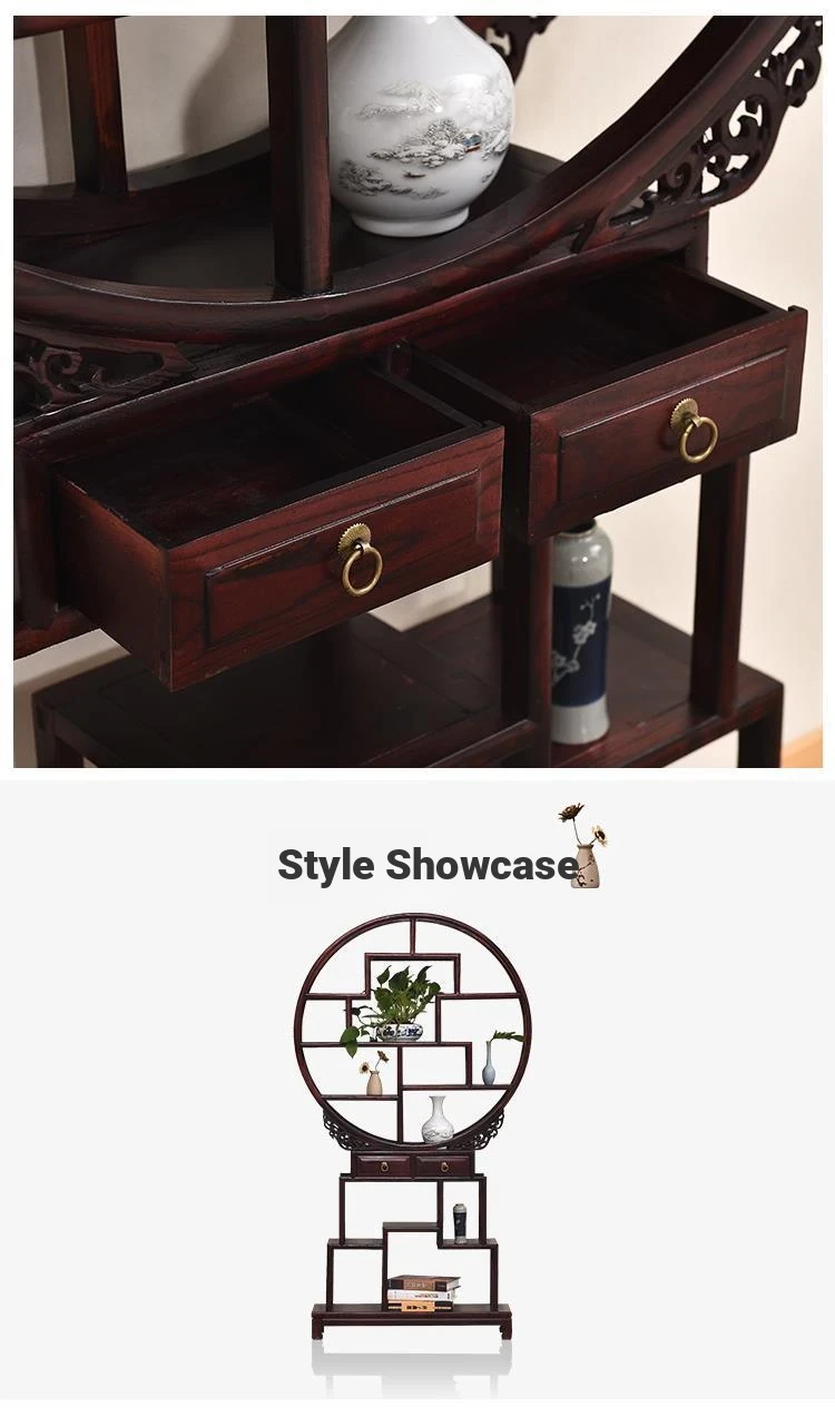 Elegant Solid Wood Chinese Style Multi-Functional Display Rack - Round Tea Leaf Shelf and Storage Stand for New Chinese Decor, Perfect for Purple Clay Teapots and Collectibles