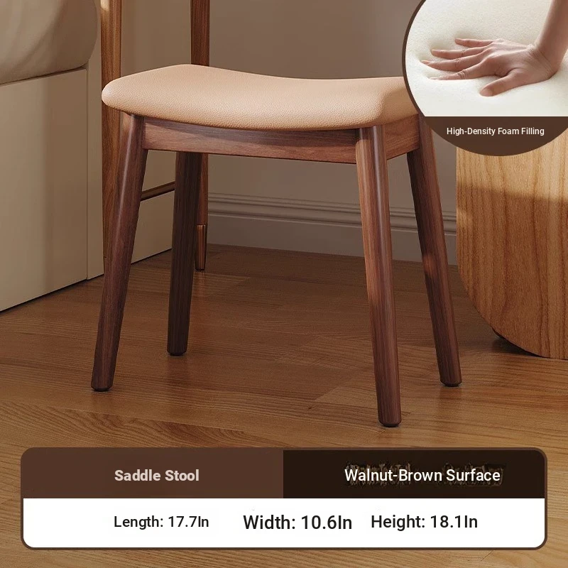 Elegant Solid Wood Saddle Stool for Girls' Bedrooms - Chic Makeup Vanity Chair, Perfect for Nail Art and Beauty Routines, Adding a Touch of Luxury to Your Space.