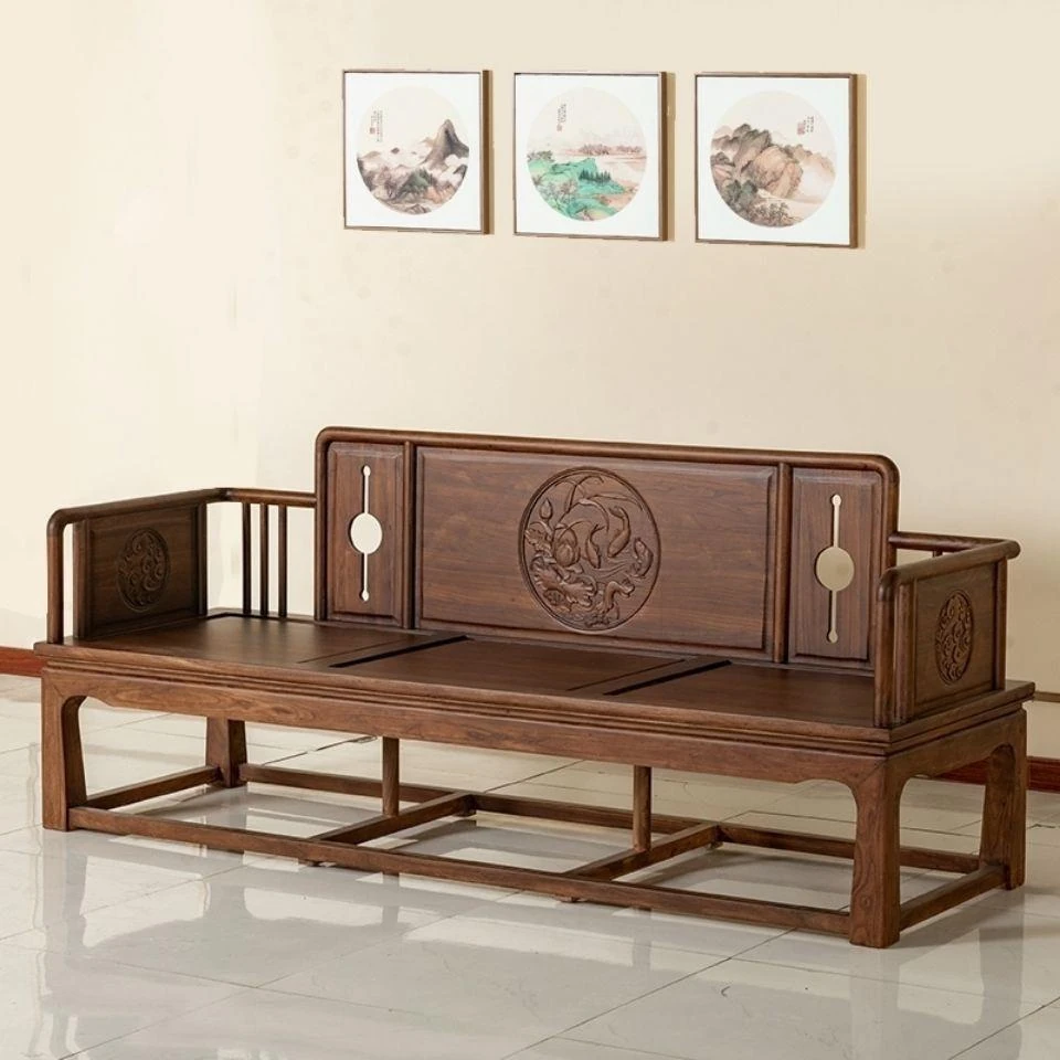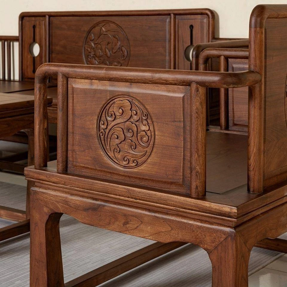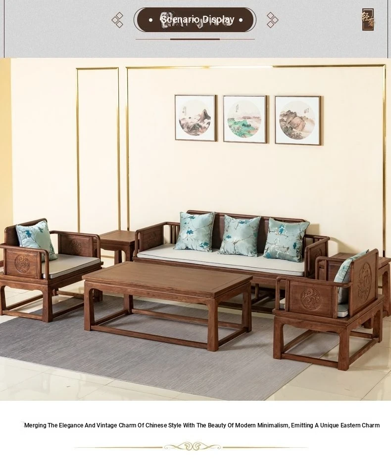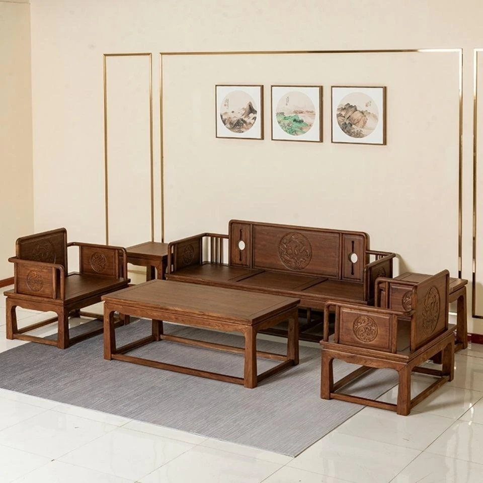 Elegant Solid Wood Sofa Set in New Chinese Style - Authentic Elm Wood, Full Solid Wood, Chinese Aesthetic Living Room Furniture, Perfect for Your Cozy Space