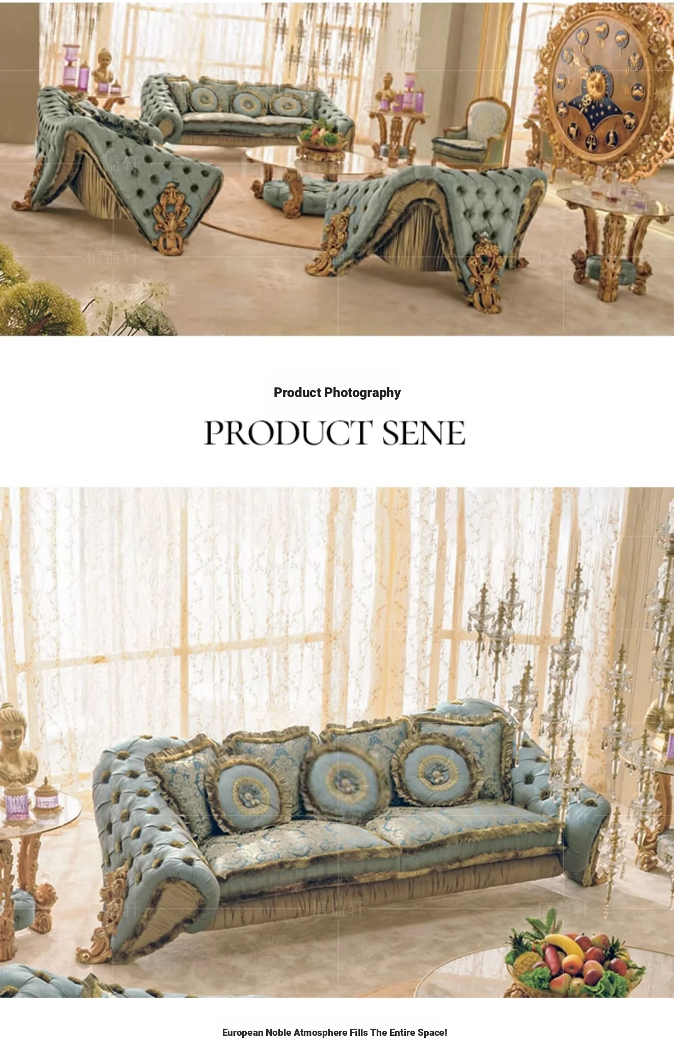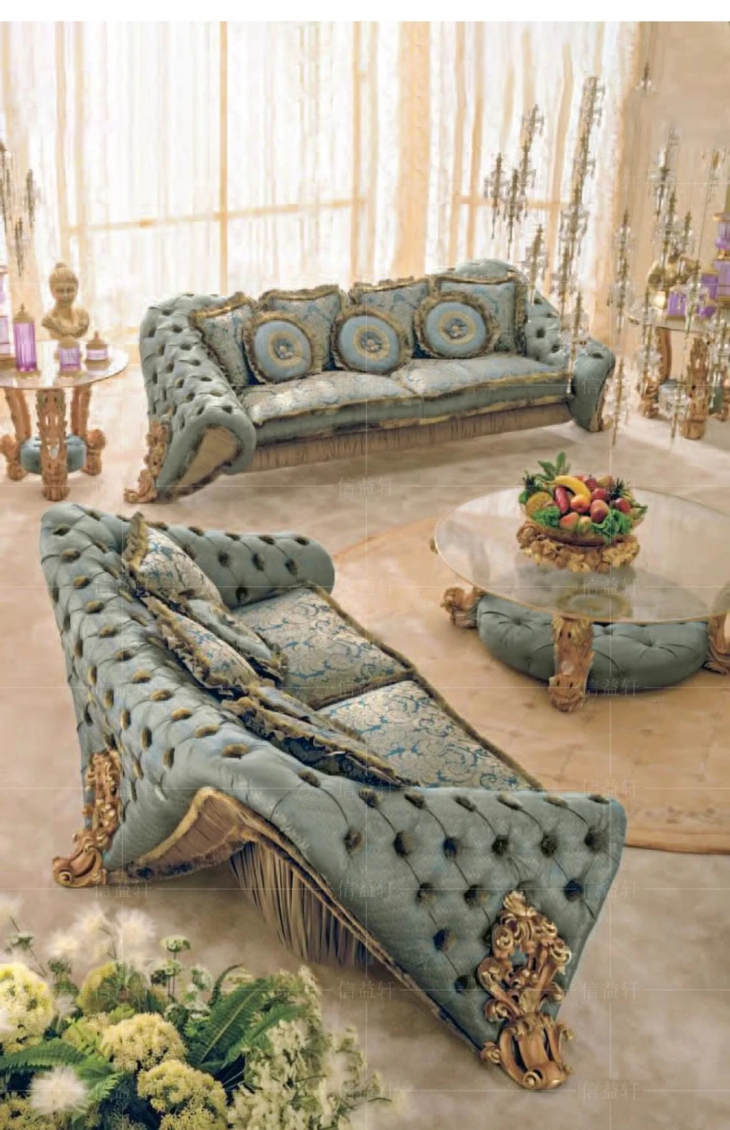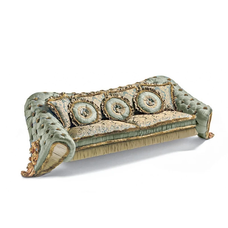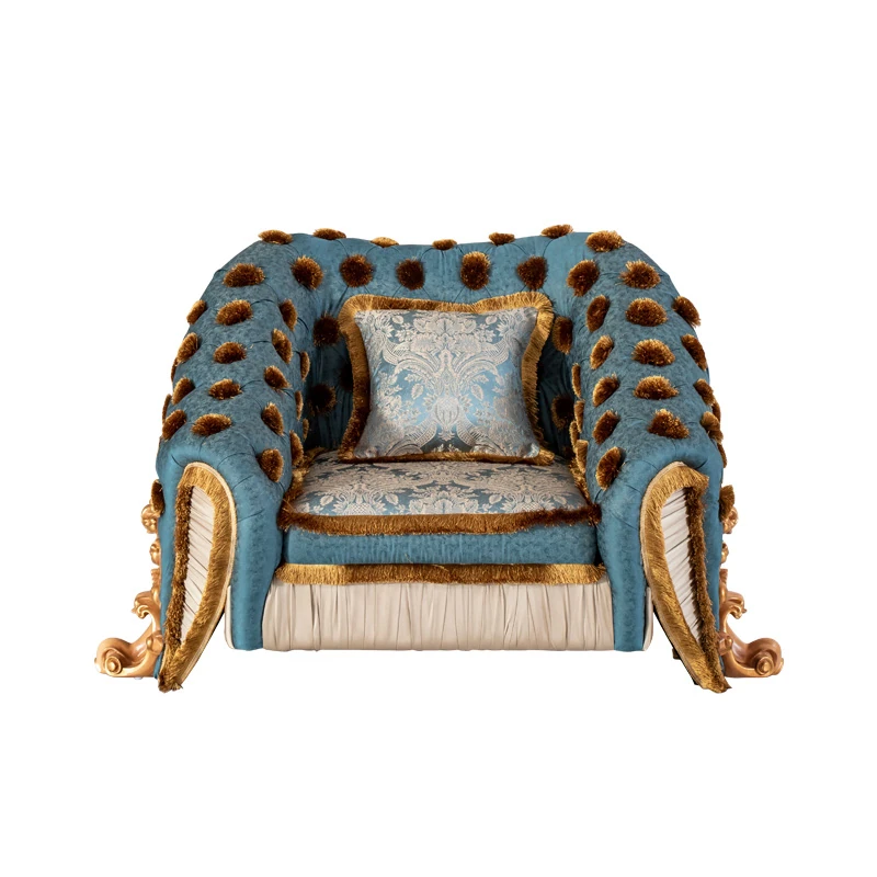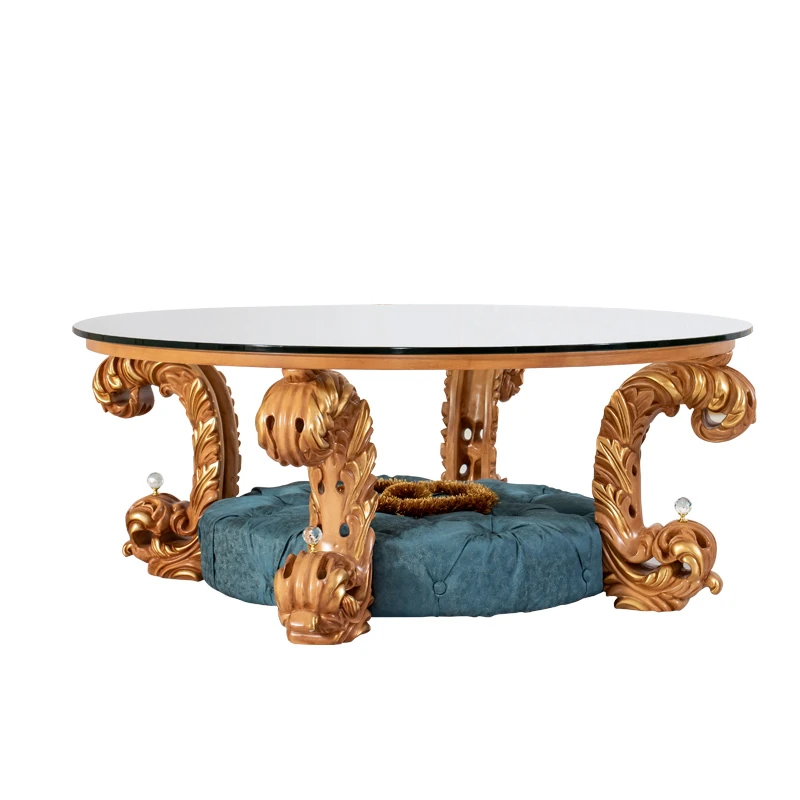 European Solid Wood Carved Luxury French New Classical Designer Creative Fabric Sofa and Coffee Table Set for Elegant Living Rooms