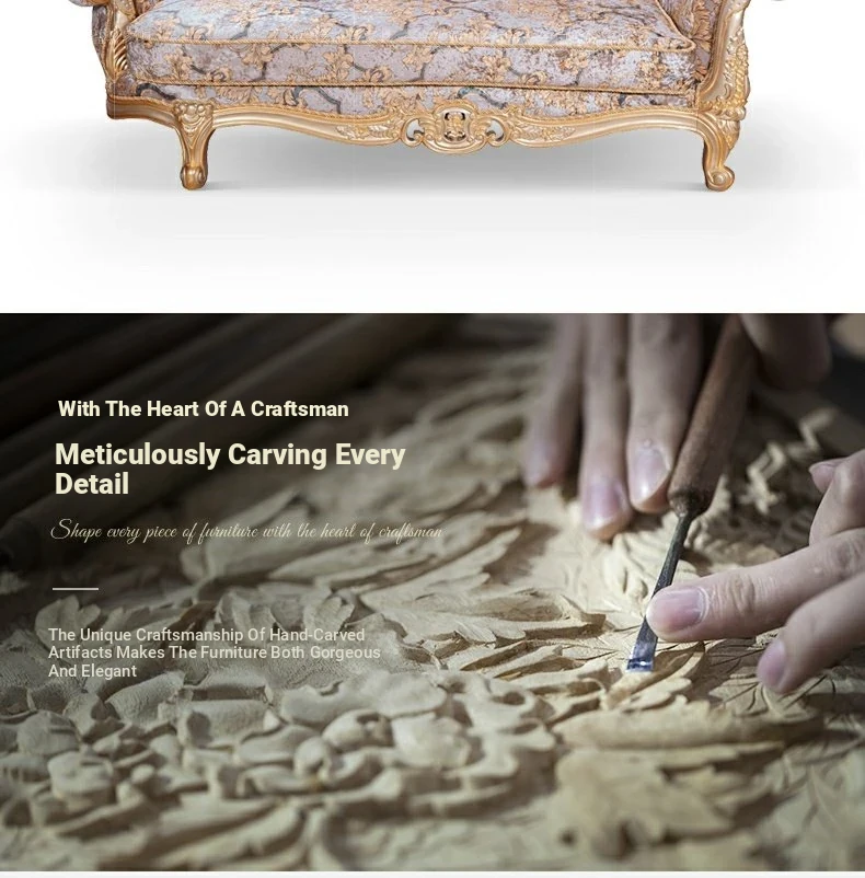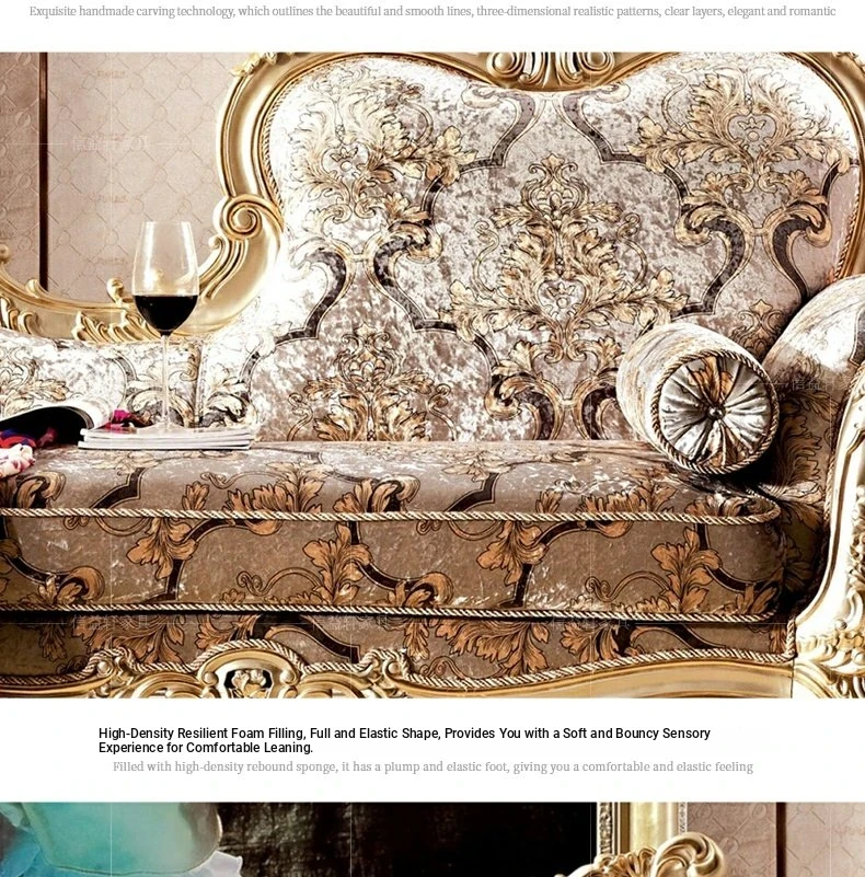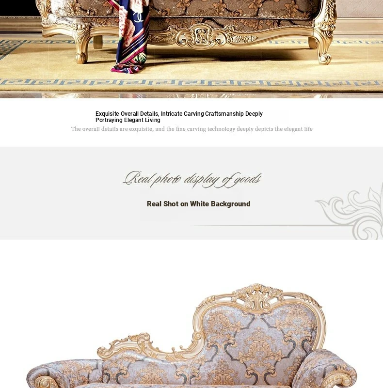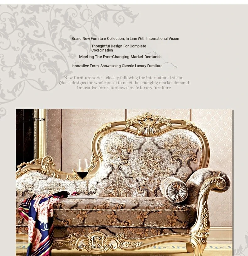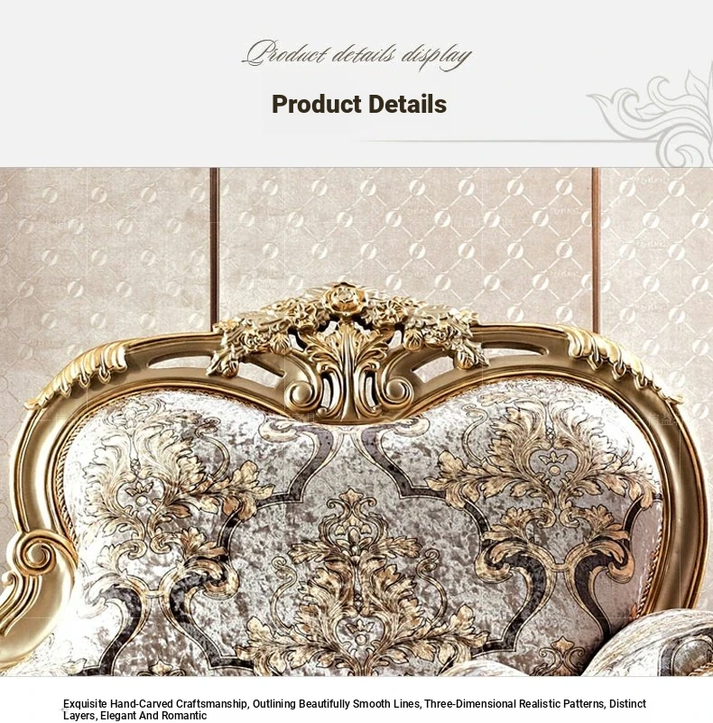 European Style Fabric Upholstered Chaise Lounge with Exquisite Wooden Carvings - Perfect for Luxurious Bedrooms and Spacious Living Rooms, Ideal for Elegant Home Decor.