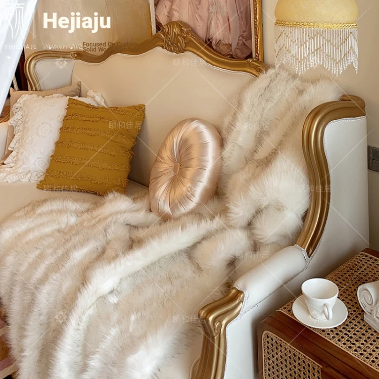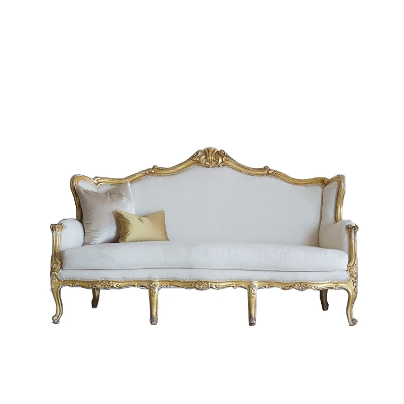 French Elegant Solid Wood Fabric Sofa - American Neo-Classical Luxurious Living Room Round Coffee Table Set for Small Spaces