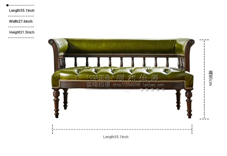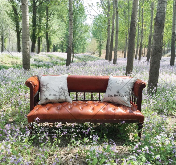 French Vintage Solid Wood Double Sofa Chair - Rustic American Style Unique Leather Lounge Chair for Photography Studio and Café Relaxation