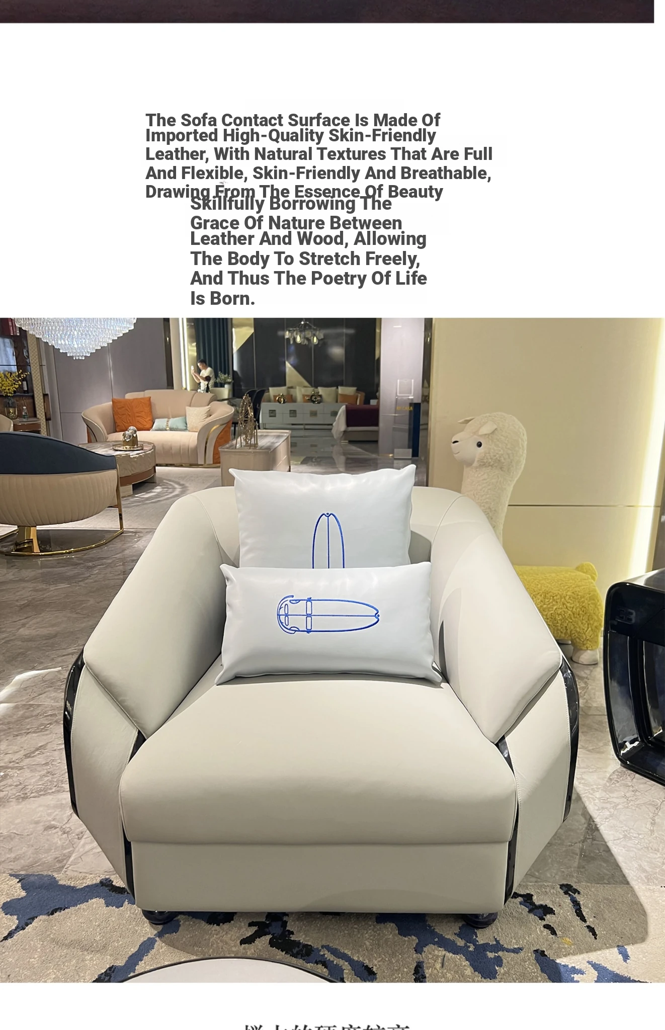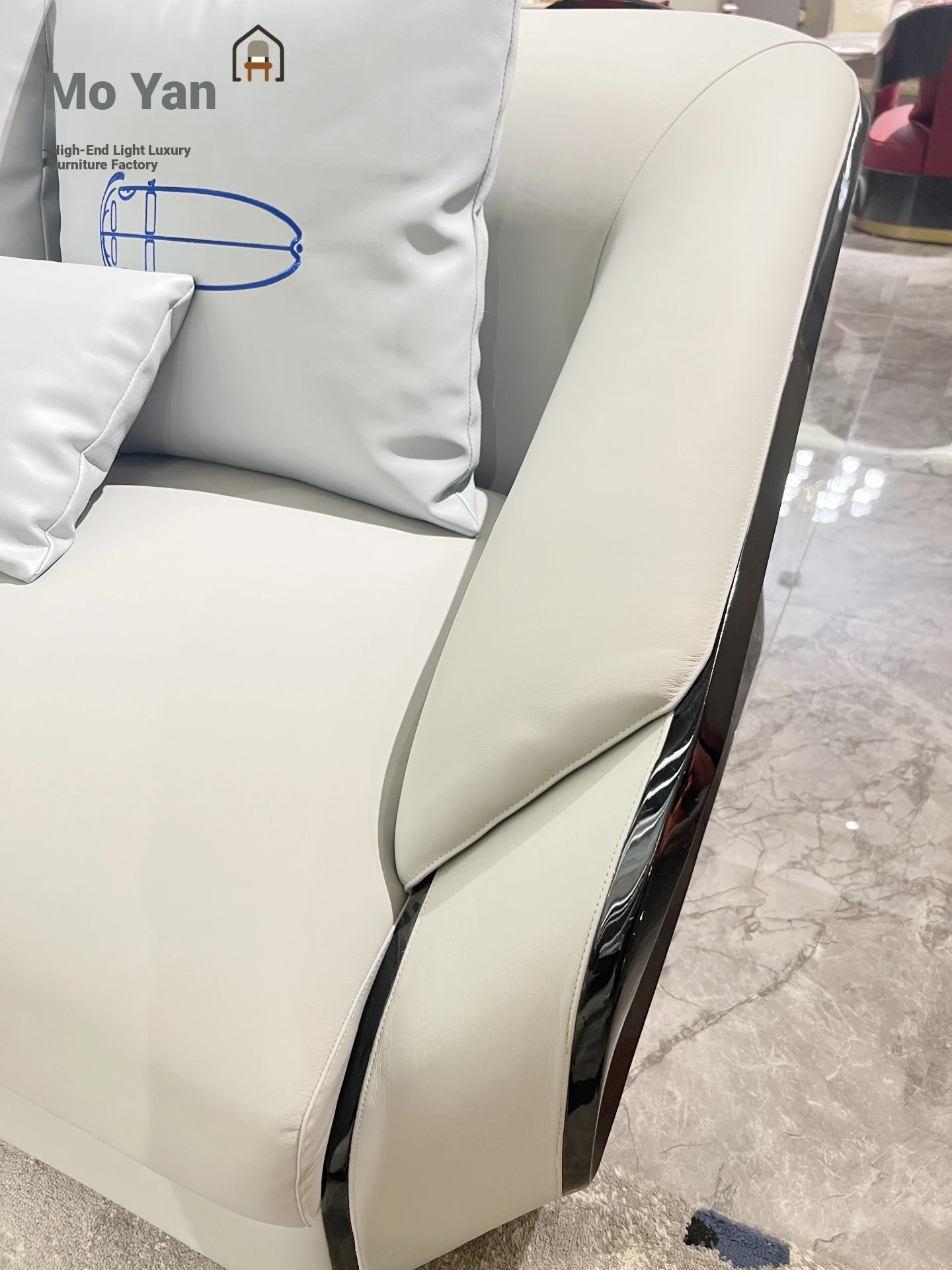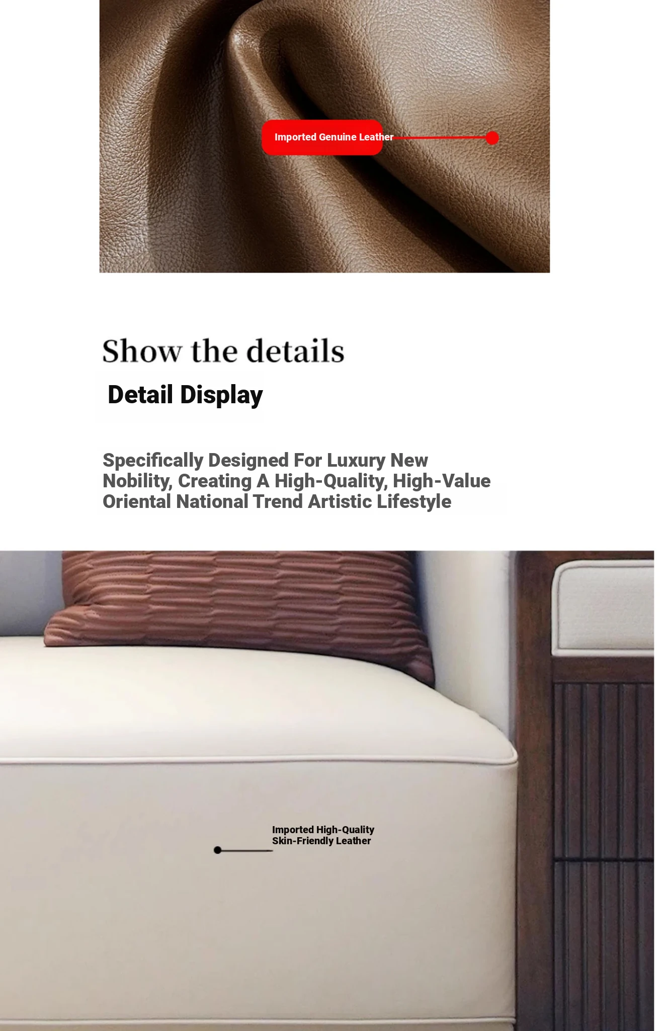 Italian Bugatti Genuine Leather Sofa - Luxurious Solid Wood High-End Furniture for Villas and Small to Medium-Sized Living Rooms, Perfect for Show Homes.