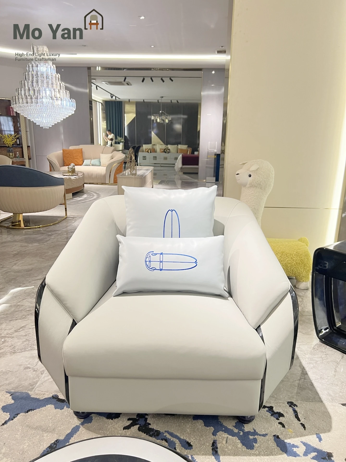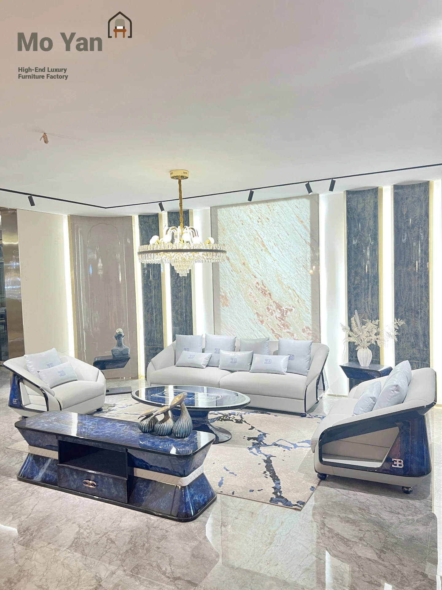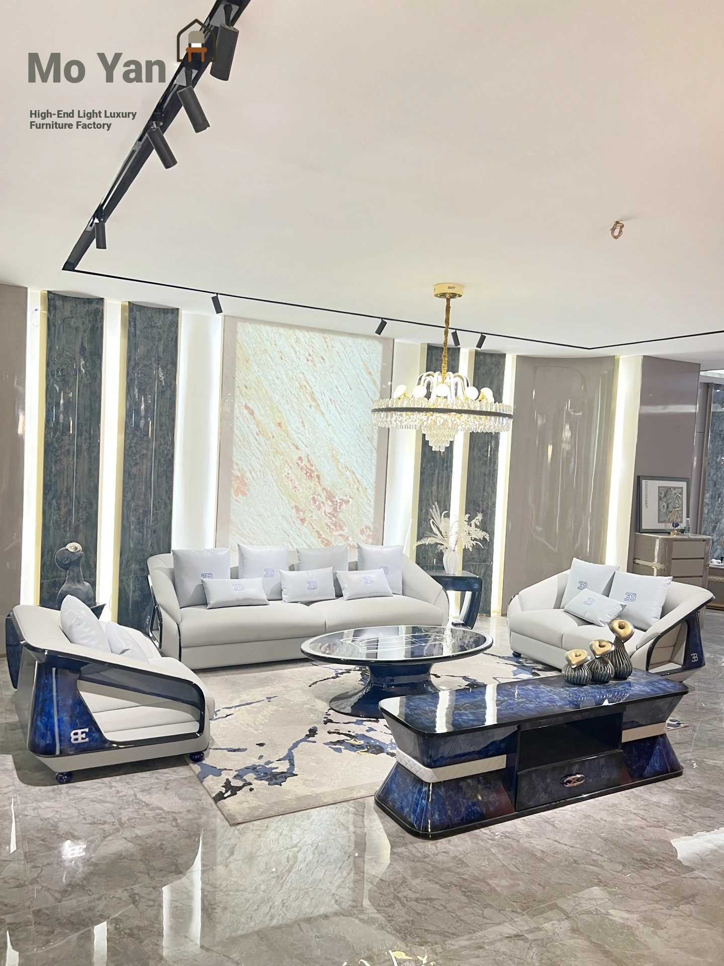 Italian Bugatti Genuine Leather Sofa - Luxurious Solid Wood High-End Furniture for Villas and Small to Medium-Sized Living Rooms, Perfect for Show Homes.