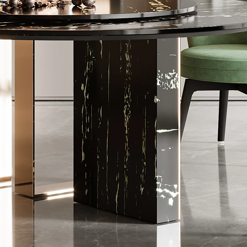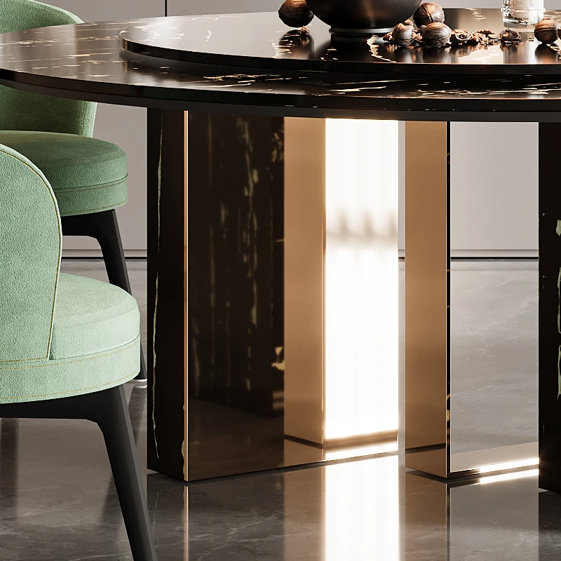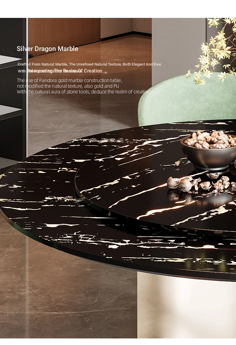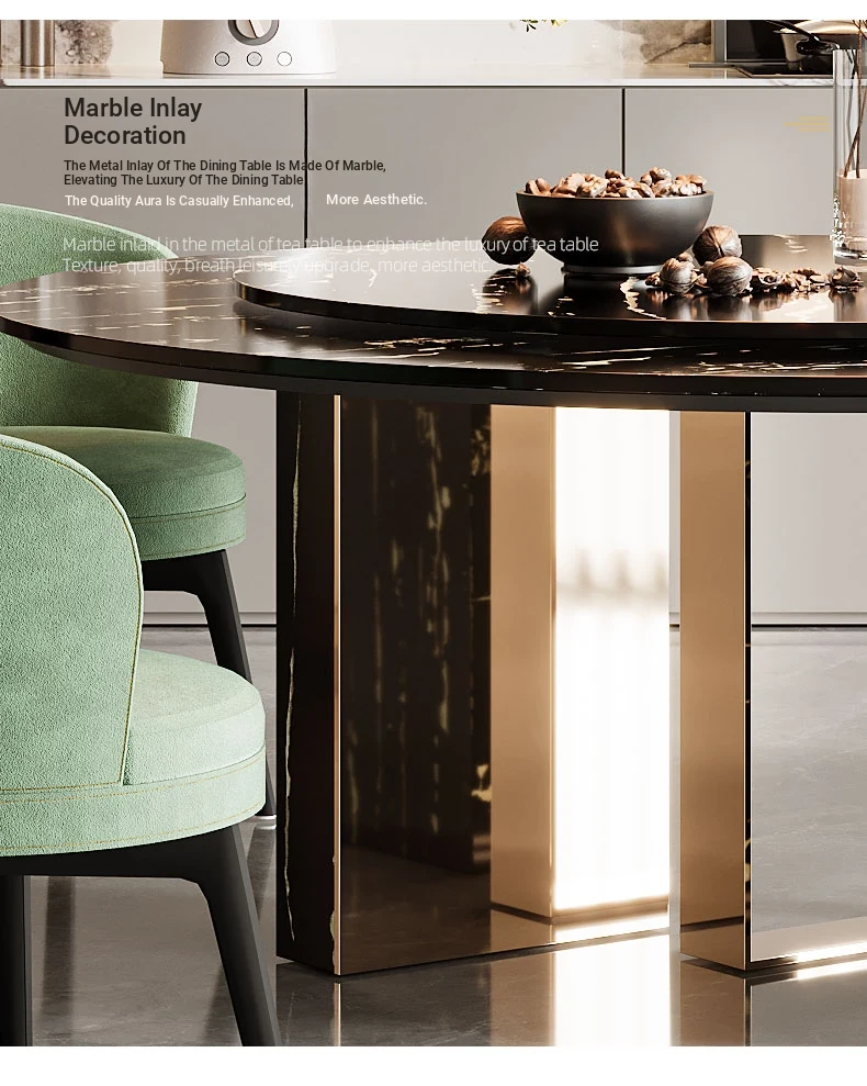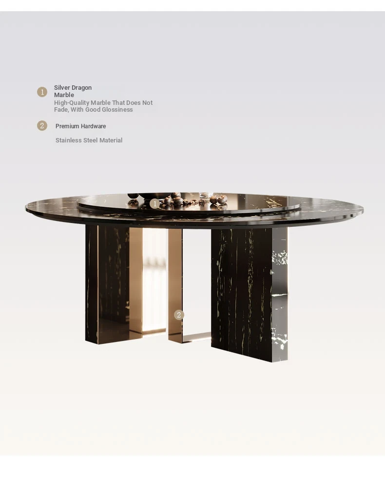 Italian Luxury Marble Round Dining Table - Modern Minimalist Stainless Steel Dining Table for Villa - Elegant 1.8m Stone Table
