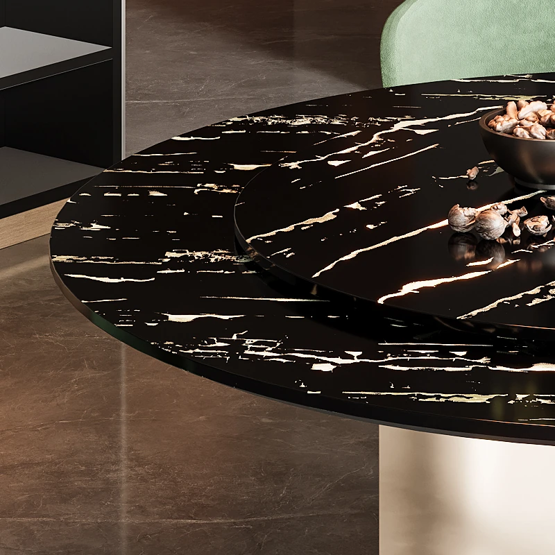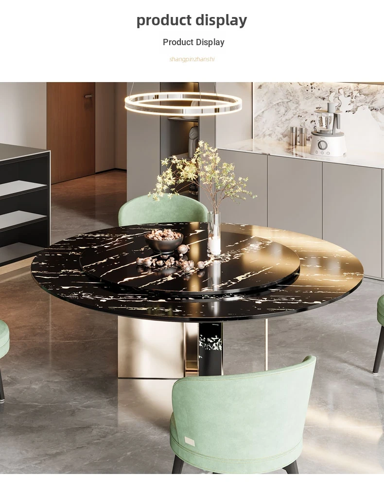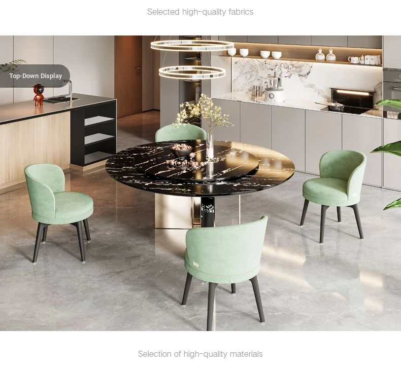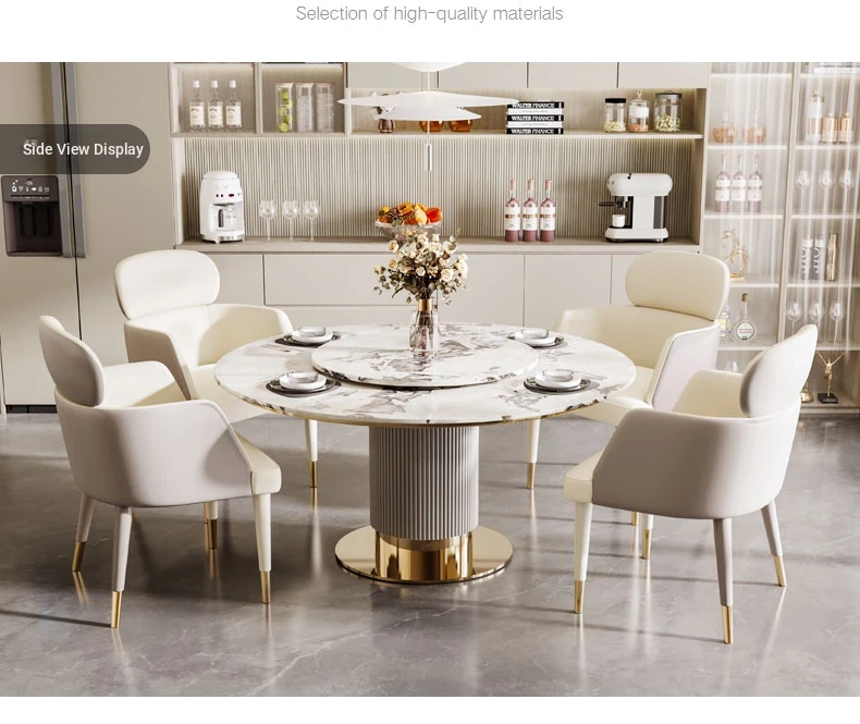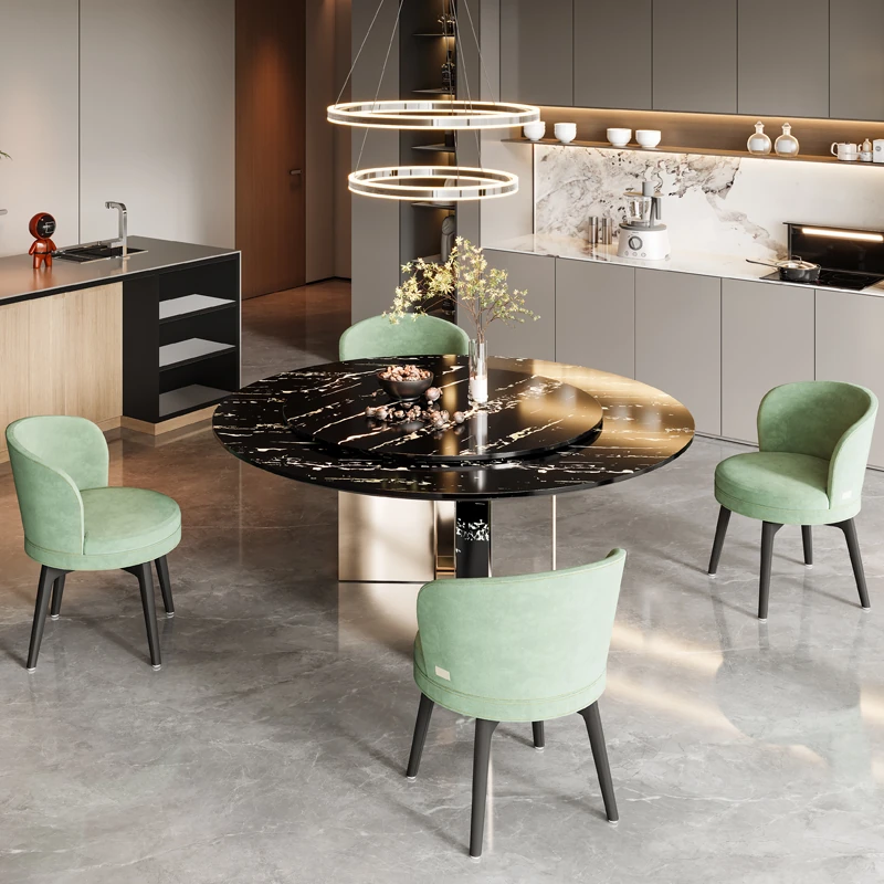 Italian Luxury Marble Round Dining Table - Modern Minimalist Stainless Steel Dining Table for Villa - Elegant 1.8m Stone Table