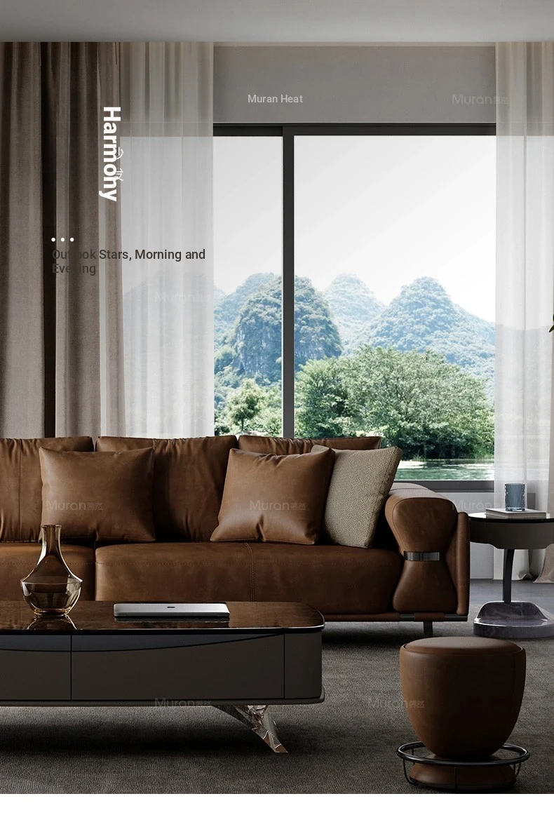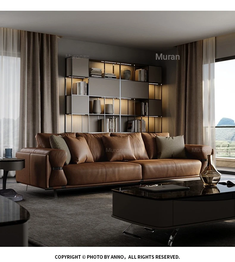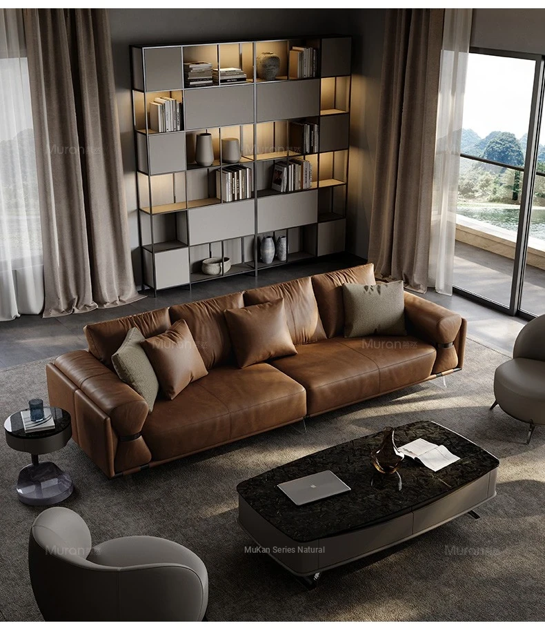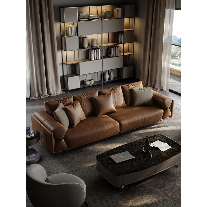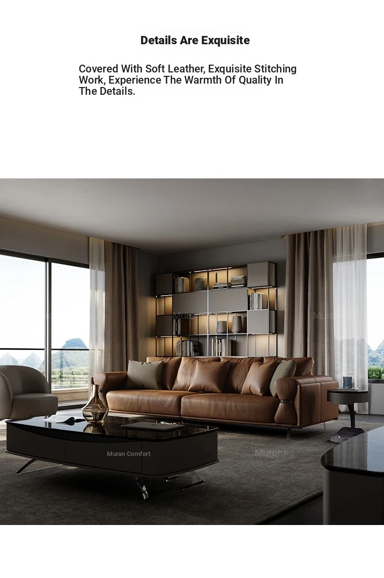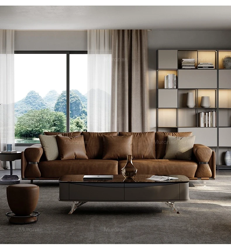Four-person/full leather [S] + A553 South American walnut tea table 54.33in