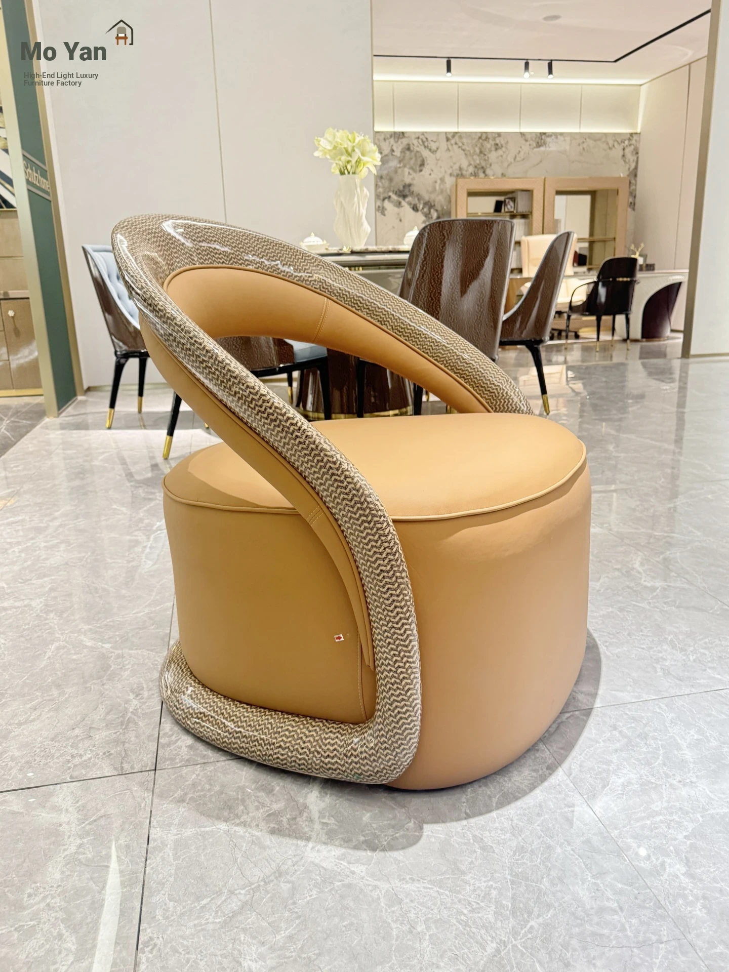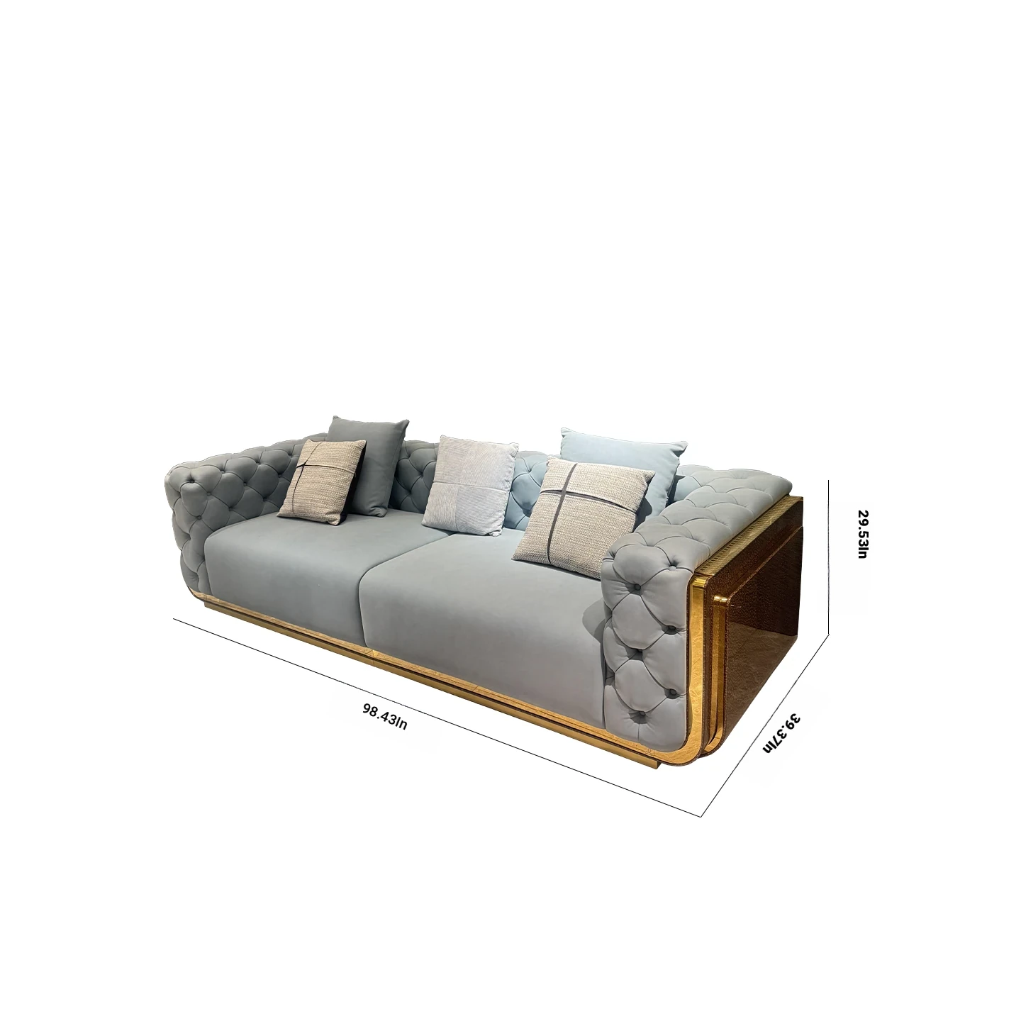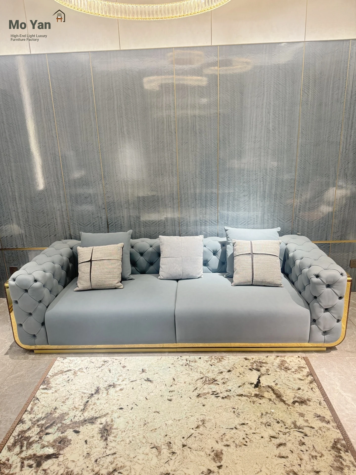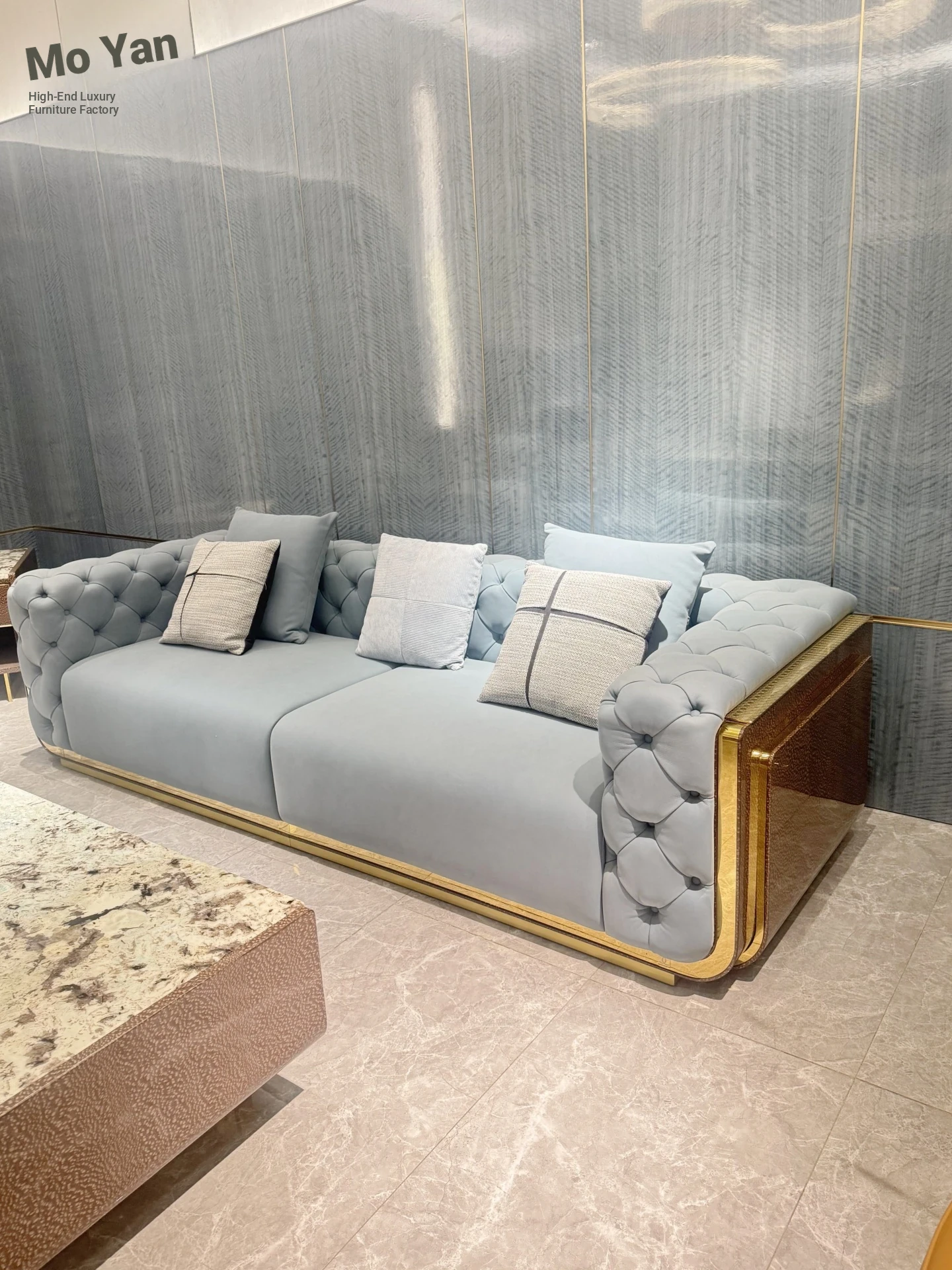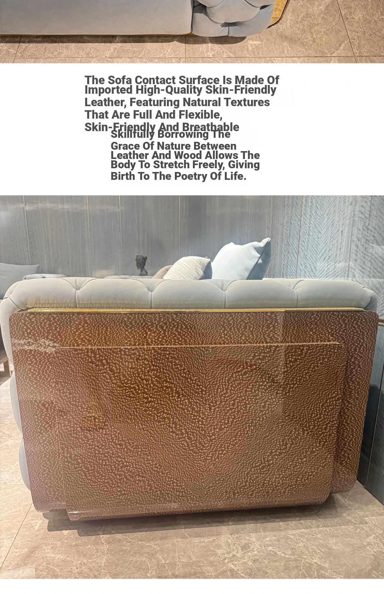 Italian Luxury Villa Large Modern High-End Leather Pull-Down Sofa with Solid Wood Furniture for Stylish Living Rooms