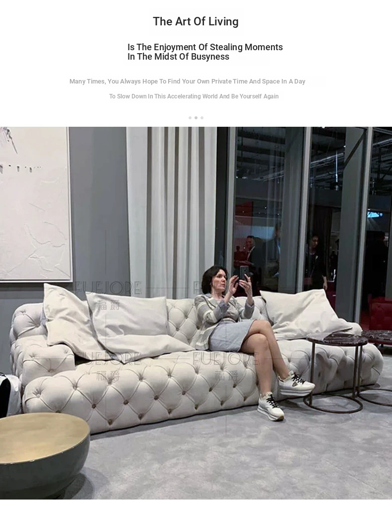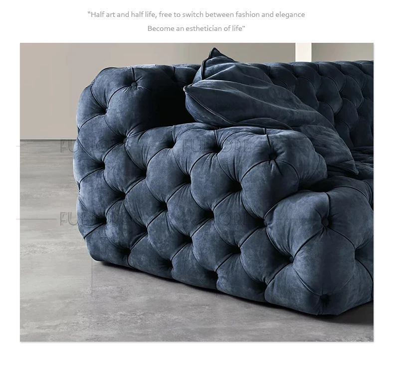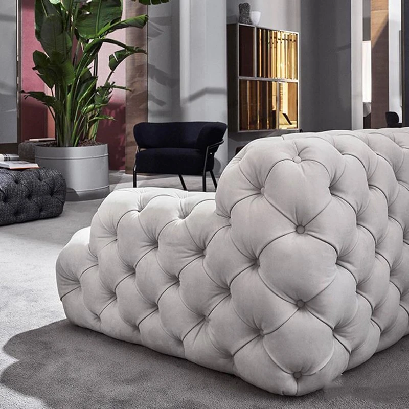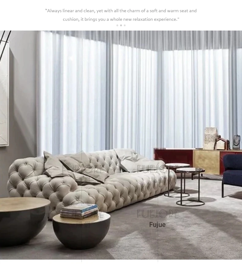 Italian Minimalist Designer Pull-String Upholstered Sofa - Luxurious Light Living Room Seating for Villas - Spacious Three-Seat Straight Design