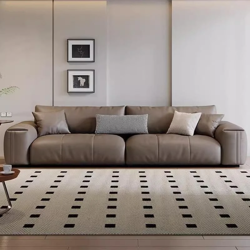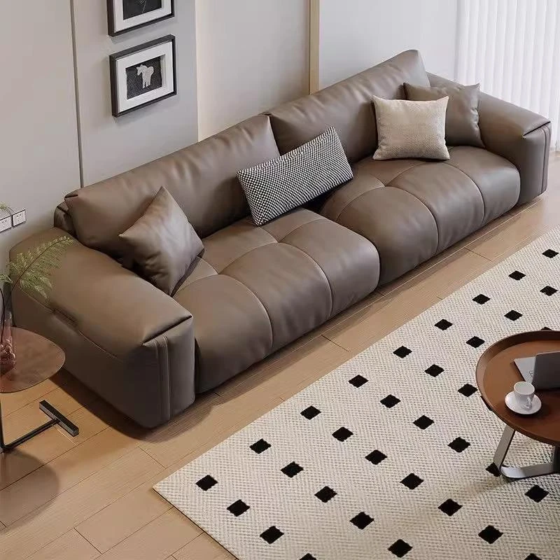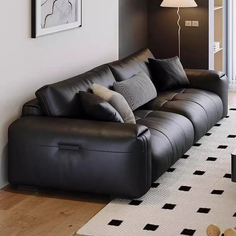 Italian Minimalist Genuine Leather Sofa - Modern Oversized Deep-Seat Block Design in Chic Black and Gray for Your Living Room
