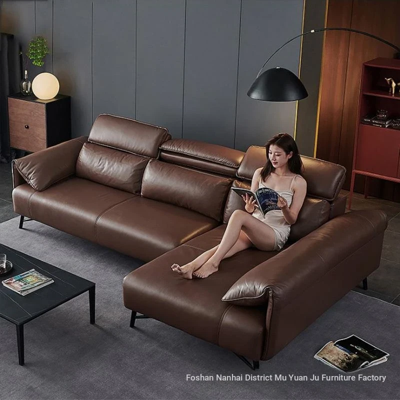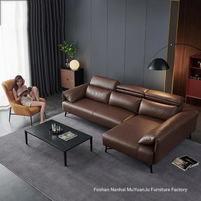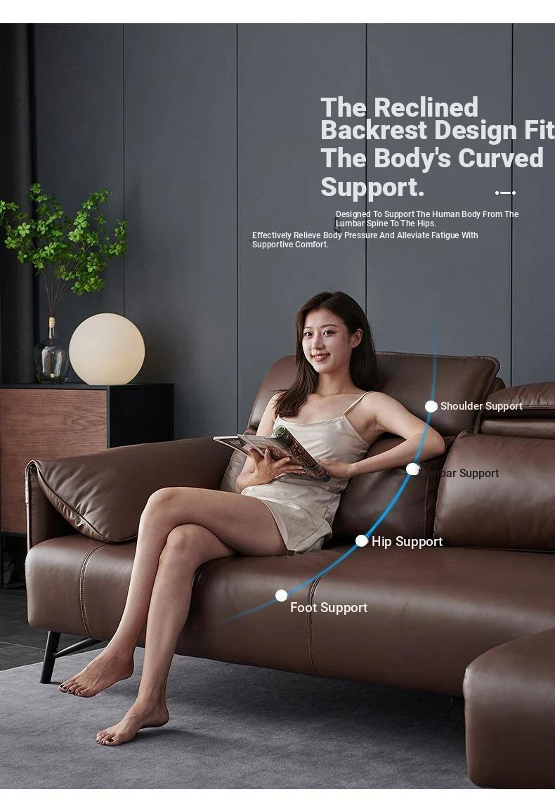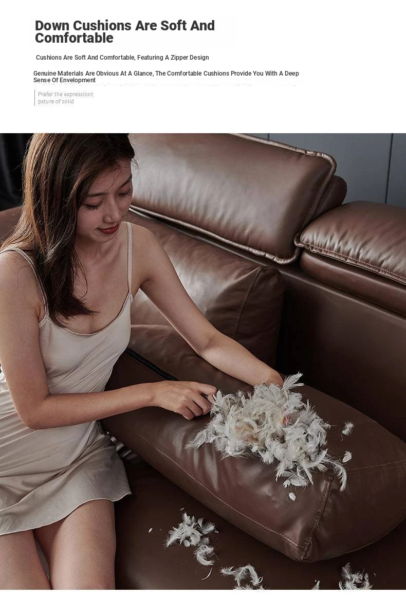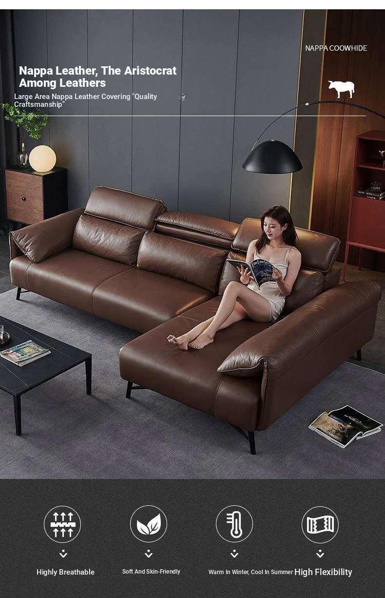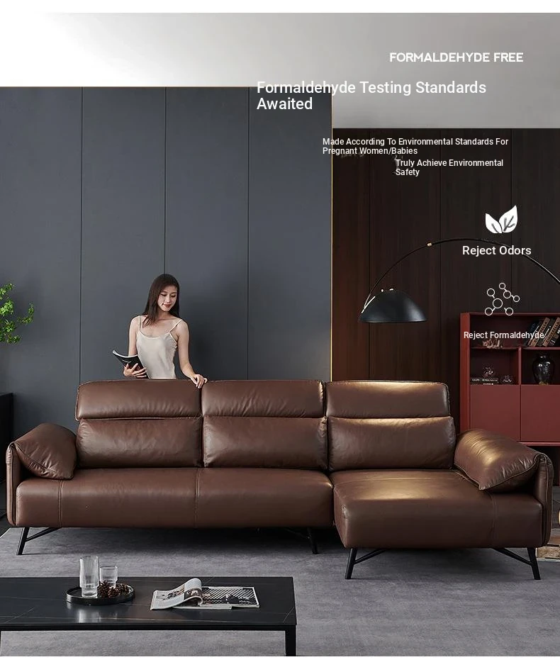 Italian Minimalist Genuine Leather Sofa Set for Small Spaces - Modern and Stylish 4-Seater Living Room Couch Made with Top Grain Cowhide