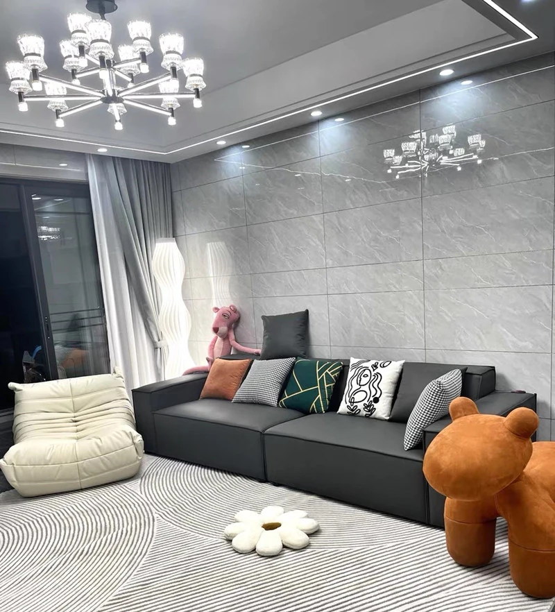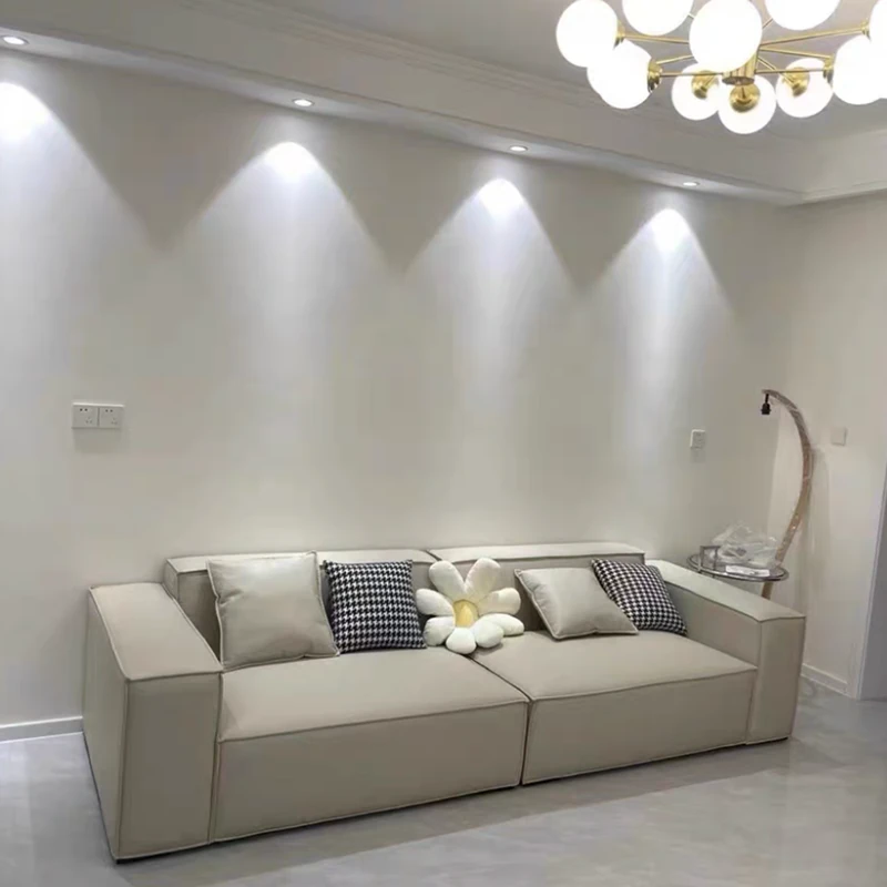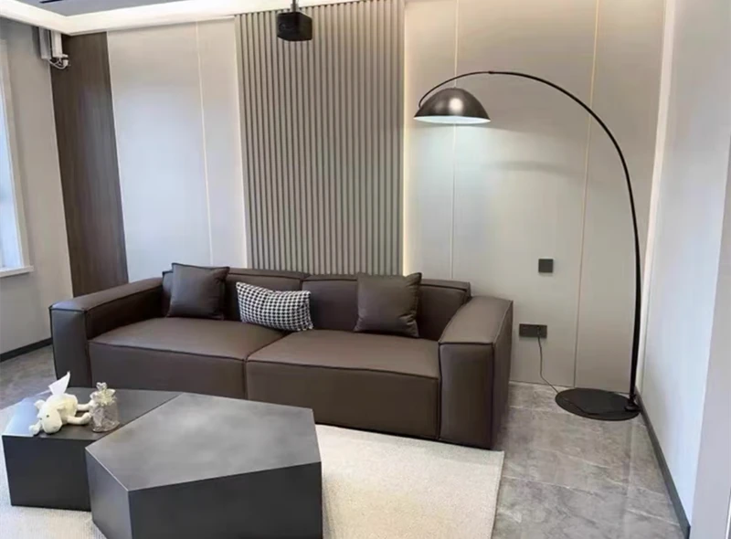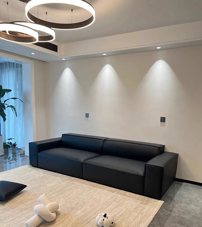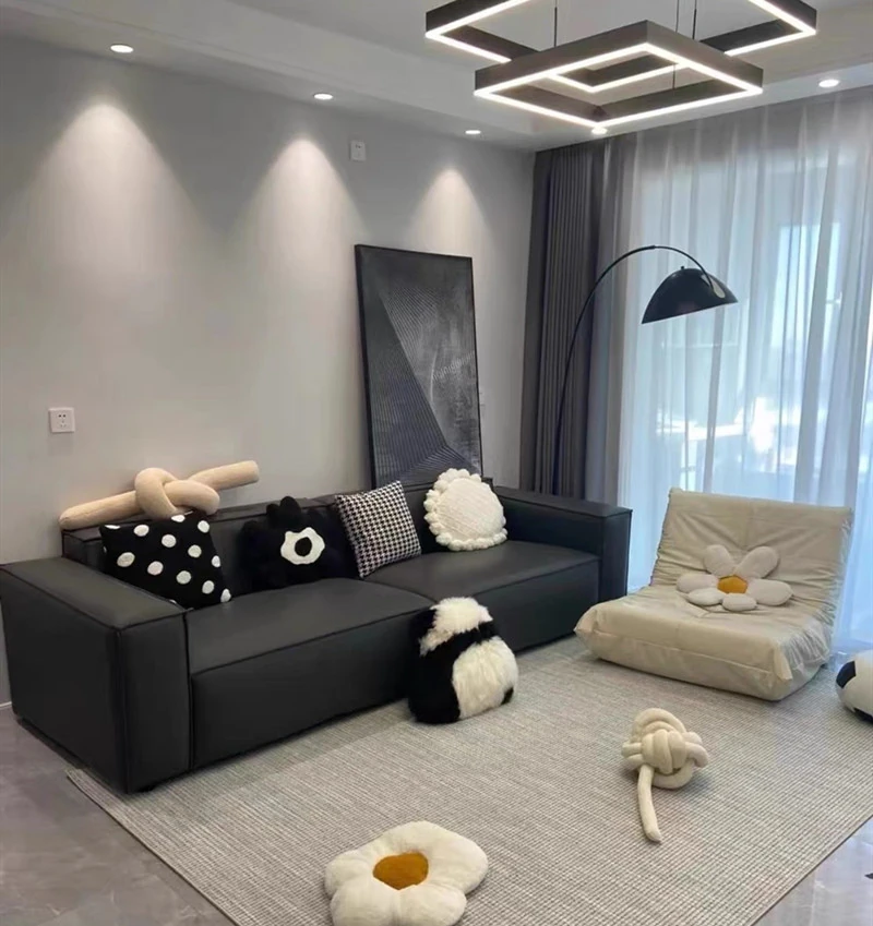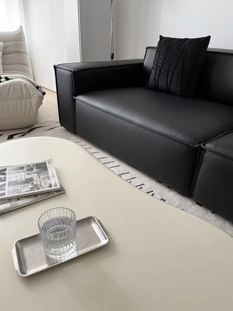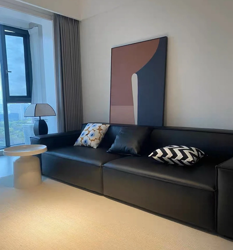 Italian Minimalist Luxury Sofa - Trendy Square Dofu Block Design in Black Tech Fabric and Leather, Perfect for Modern Living Spaces