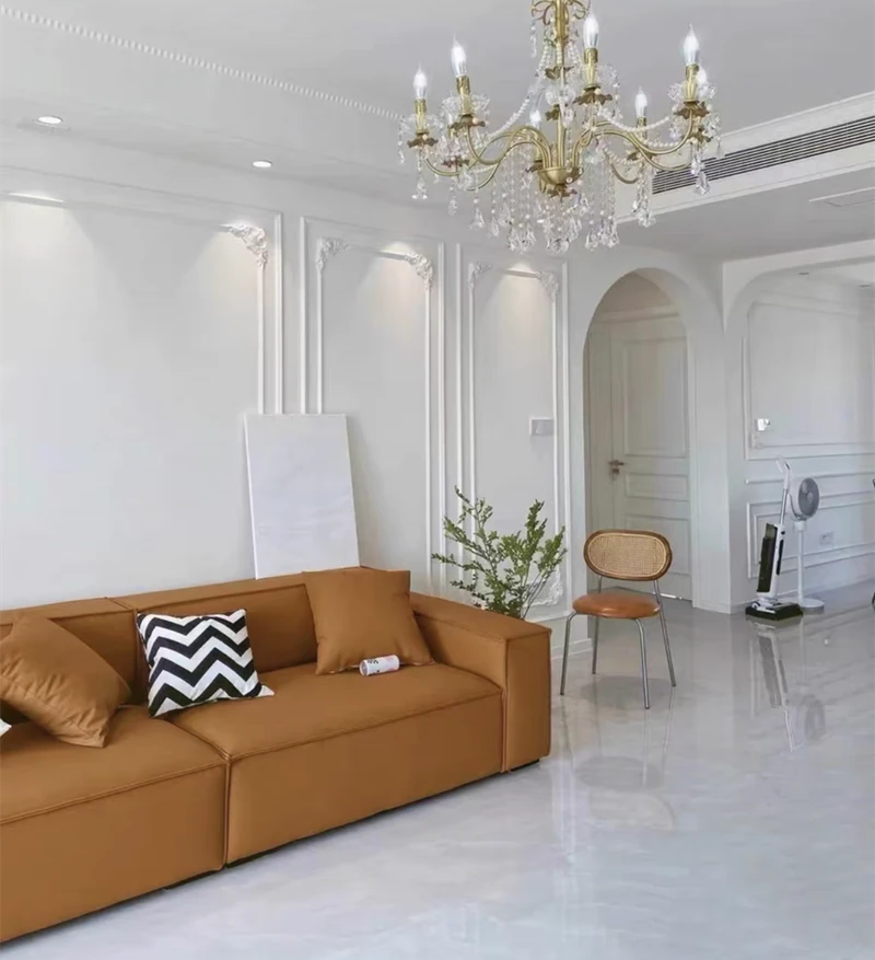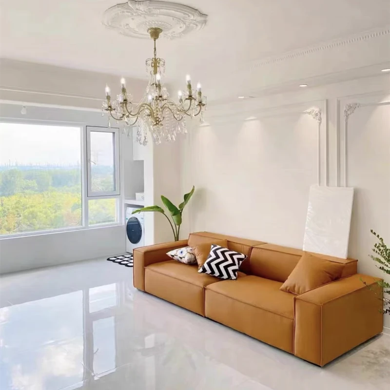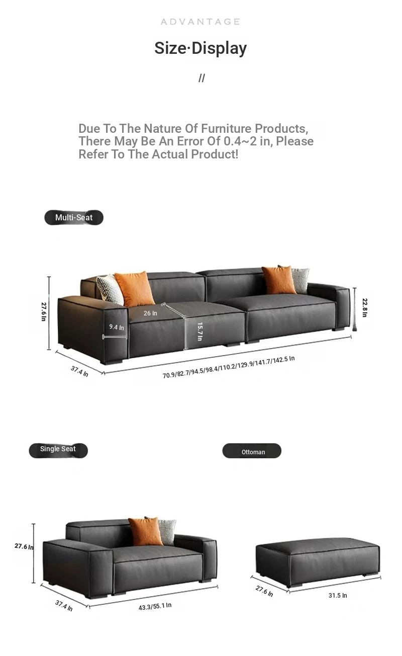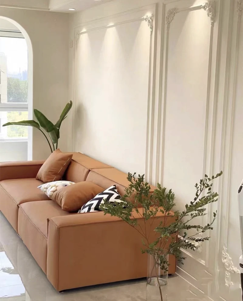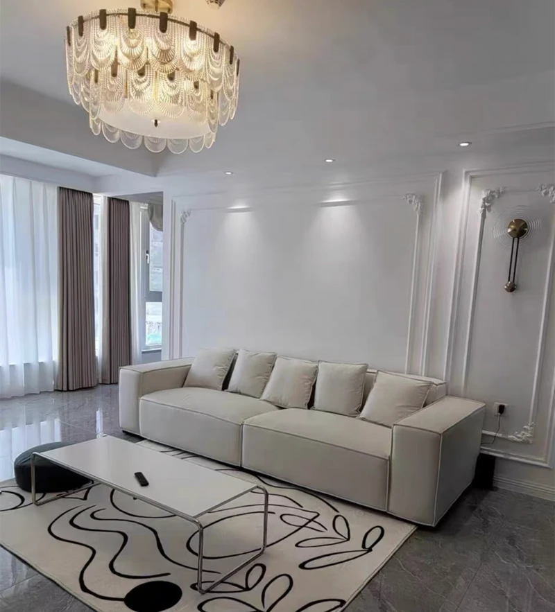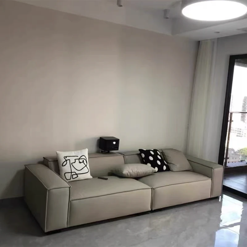 Italian Minimalist Luxury Sofa - Trendy Square Dofu Block Design in Black Tech Fabric and Leather, Perfect for Modern Living Spaces