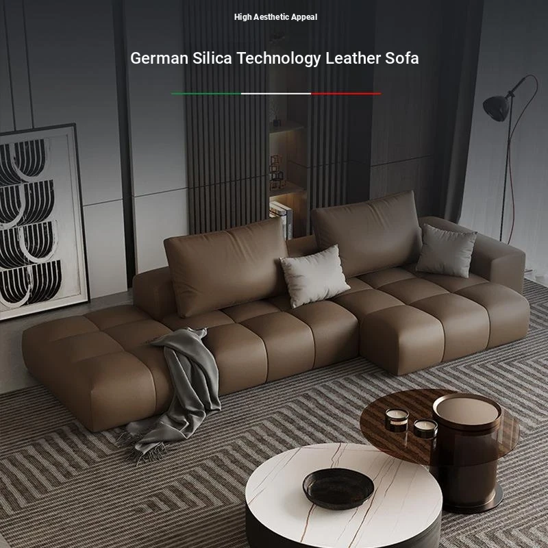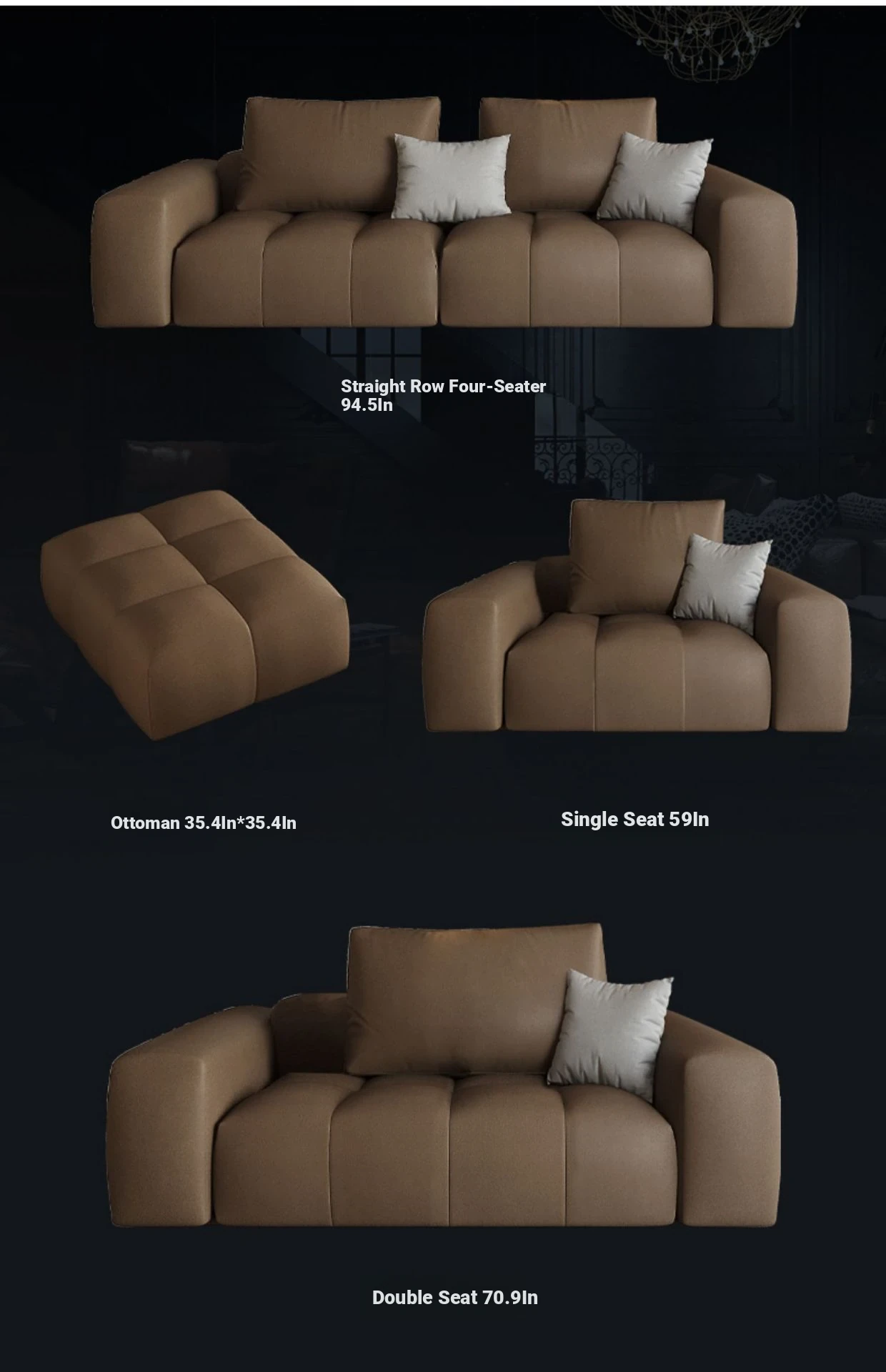 Italian Minimalist Sofa for Small Living Rooms - Modern Simple Luxury Faux Leather Couch with High-Quality Silicone Leather, Perfect for Chic Interiors