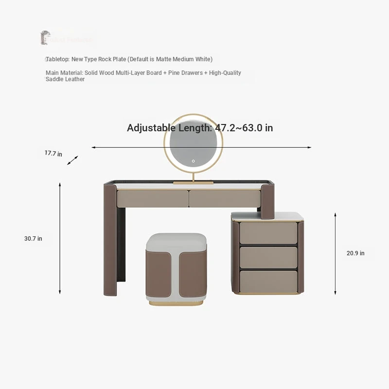 47.24 in single dressing table (double smoking) + side cabinet + stool + makeup mirror