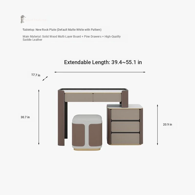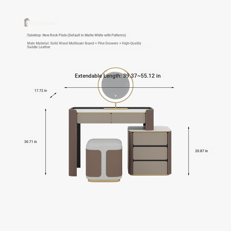 39.37 in single comb table (double draw) + side cabinet + stool makeup + makeup mirror