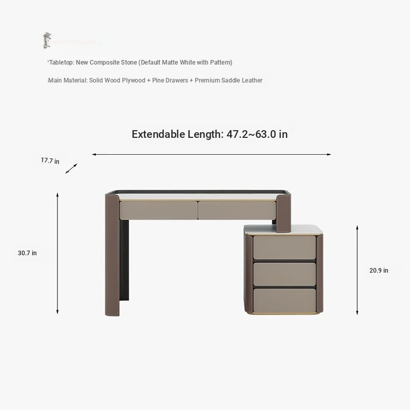 39.37 in single dressing table (double layer) + side cabinet