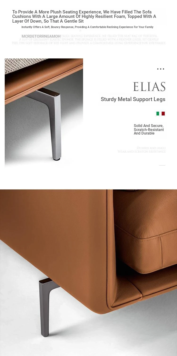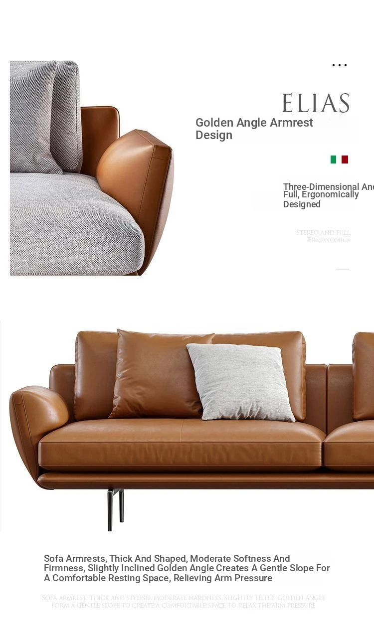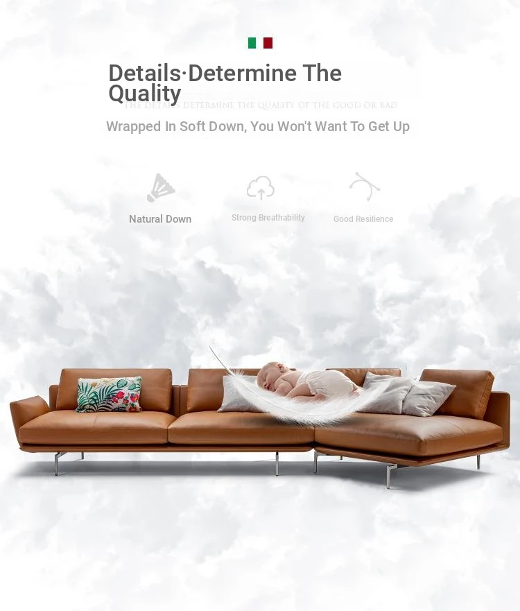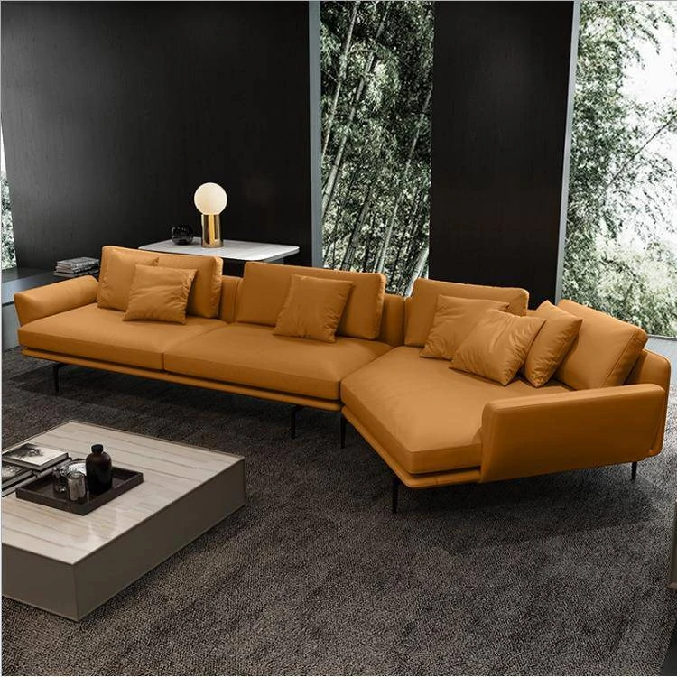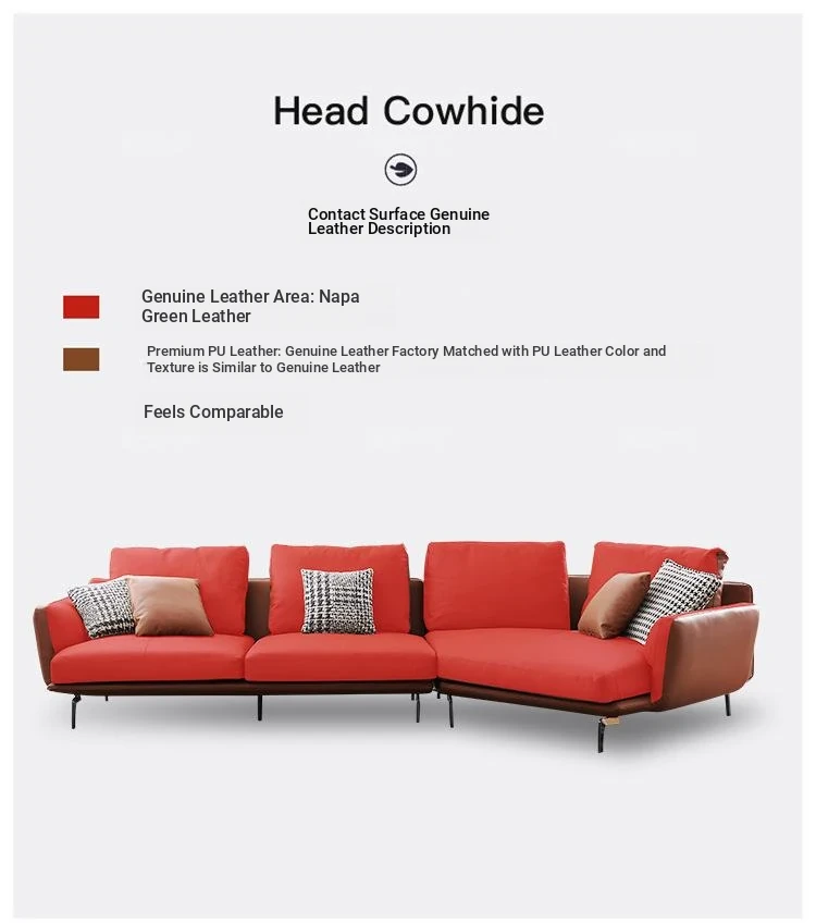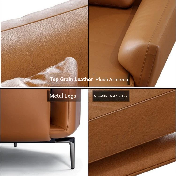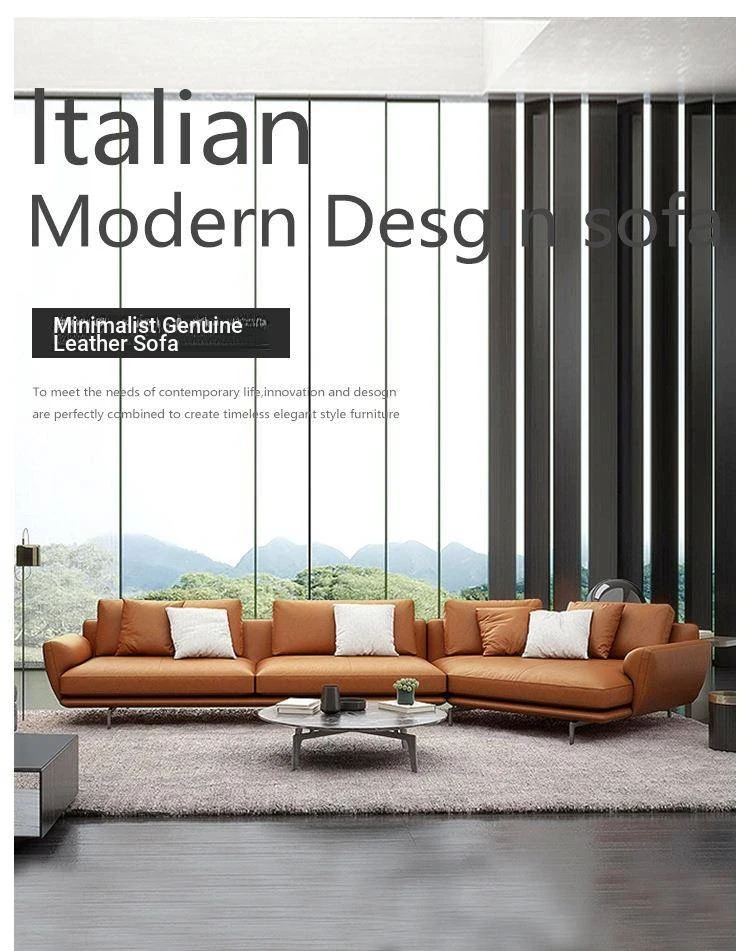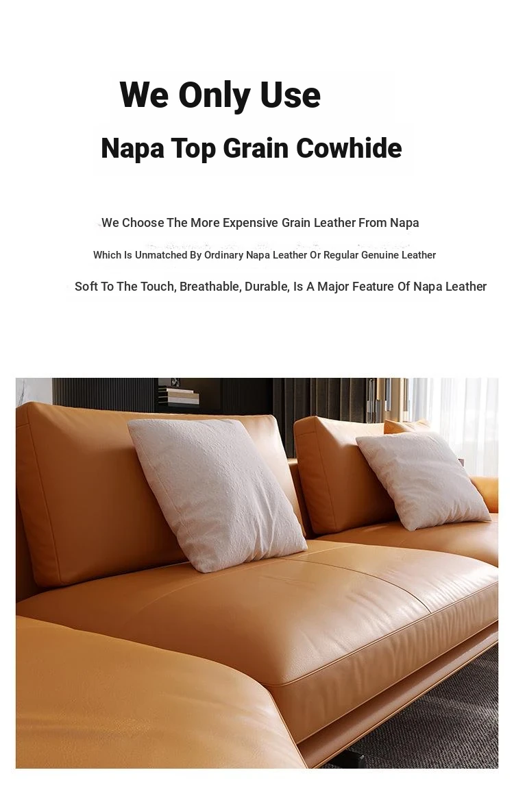 Luxurious Minimalist Genuine Leather Sofa - Designer Modern Nappa Sectional Chaise Lounge for Spacious Living Rooms