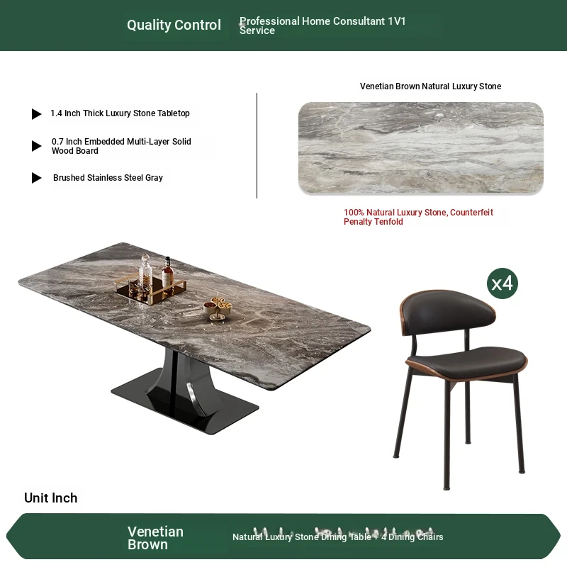[Venice Brown Made in China] Natural Luxury Stone Dining Table + Dining Chair * 4 (Pure Natural Luxury Stone, Ten Penalties for One False)