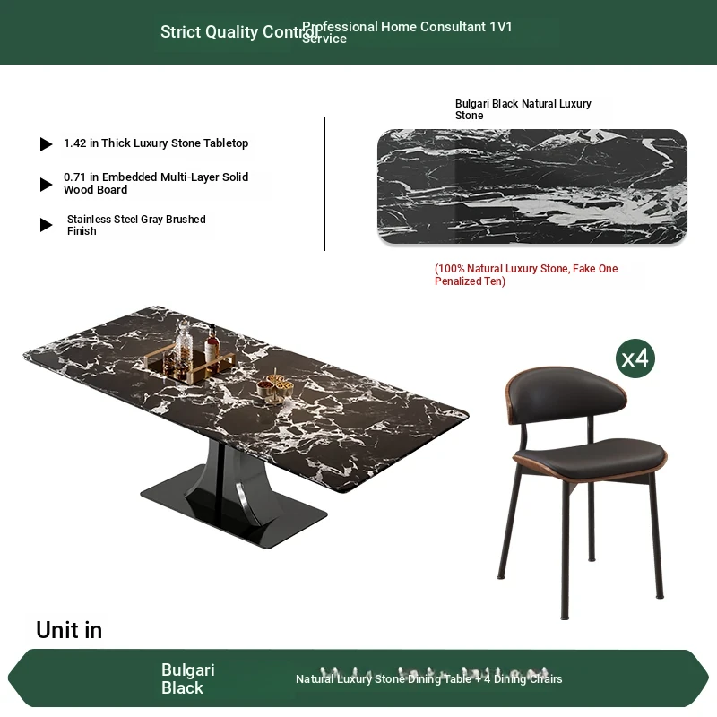 [Bulgari Black] Natural Luxury Stone Dining Table + Dining Chair * 4 (Pure Natural Luxury Stone, Ten Penalties for Fake)