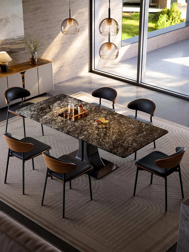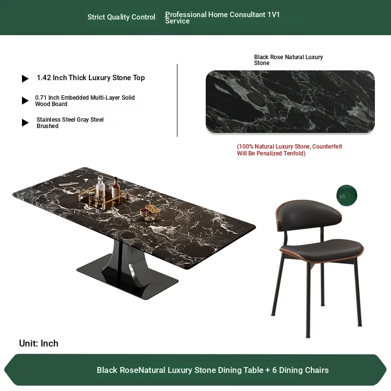 [Black Rose] Natural Luxury Stone Dining Table + Dining Chair * 6 (Pure Natural Luxury Stone, Ten Penalties for Fake)