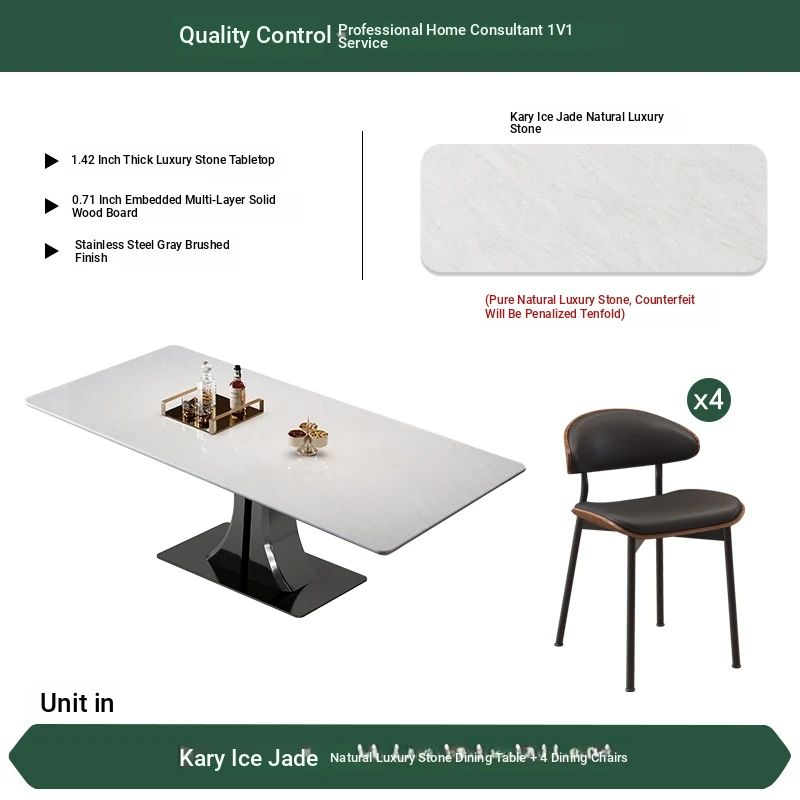 [Platinum Diamond] Natural Luxury Stone Dining Table + Dining Chair * 4 (Pure Natural Luxury Stone, Ten Penalties for Fake)