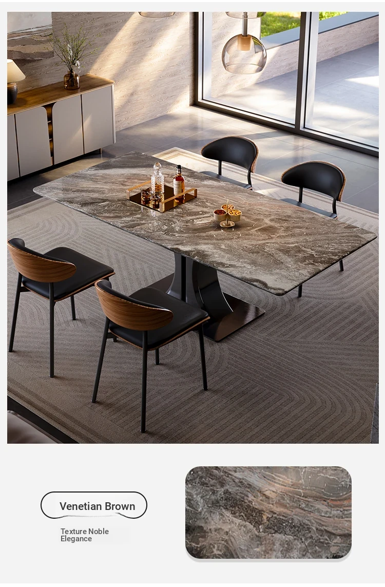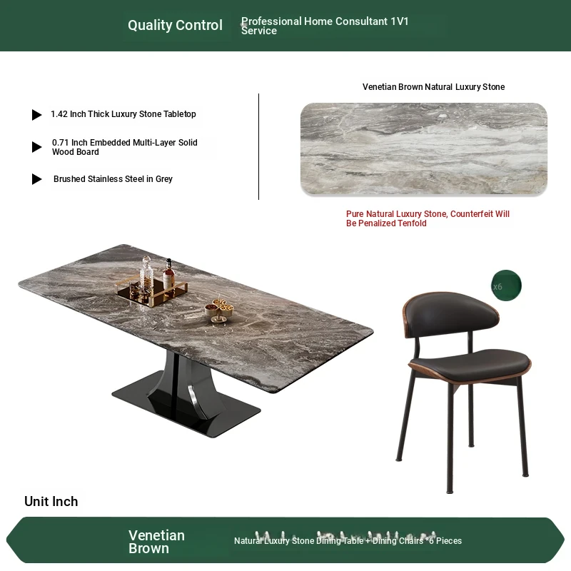 [Venice Brown Made in China] Natural Luxury Stone Dining Table + Dining Chair * 6 (Pure Natural Luxury Stone, Ten Penalties for Fake)