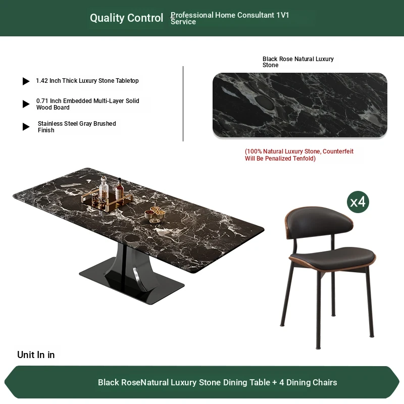 [Black Rose] Natural Luxury Stone Dining Table + Dining Chair * 4 (Pure Natural Luxury Stone, Ten Penalties for Fake)