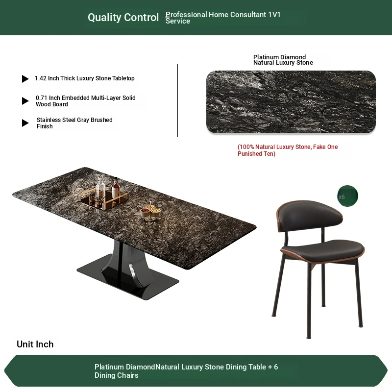 [Platinum Diamond] Natural Luxury Stone Dining Table + Dining Chair * 6 (Pure Natural Luxury Stone, Ten Penalties for Fake)