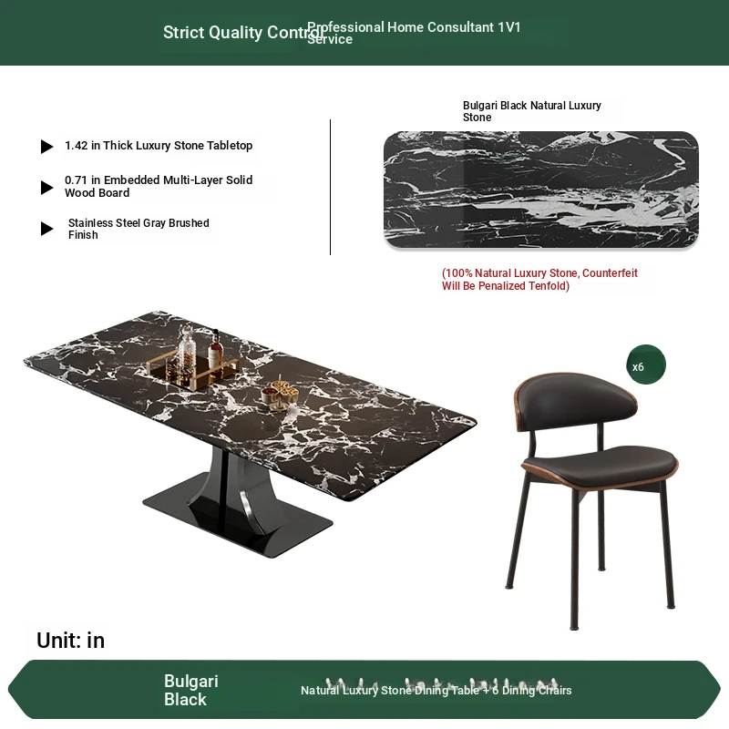 [Bulgari Black] Natural Luxury Stone Dining Table + Dining Chair * 6 (Pure Natural Luxury Stone, Ten Penalties for Fake)