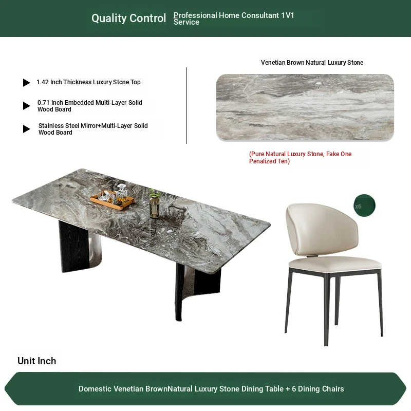 [Venice Brown Made in China] Natural Luxury Stone Dining Table + Dining Chair * 6 (Pure Natural Luxury Stone, Ten Penalties for Fake)