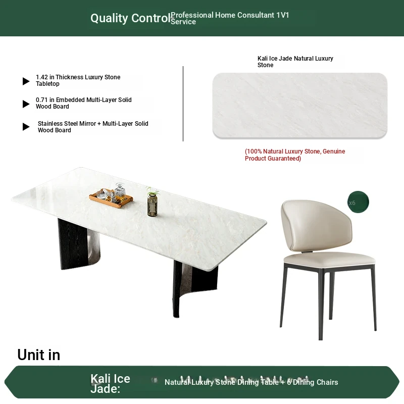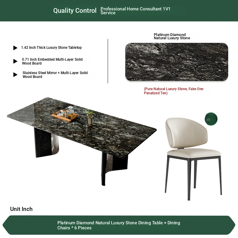 [Platinum Diamond] Natural Luxury Stone Dining Table + Dining Chair * 6 (Pure Natural Luxury Stone, Ten Penalties for Fake)